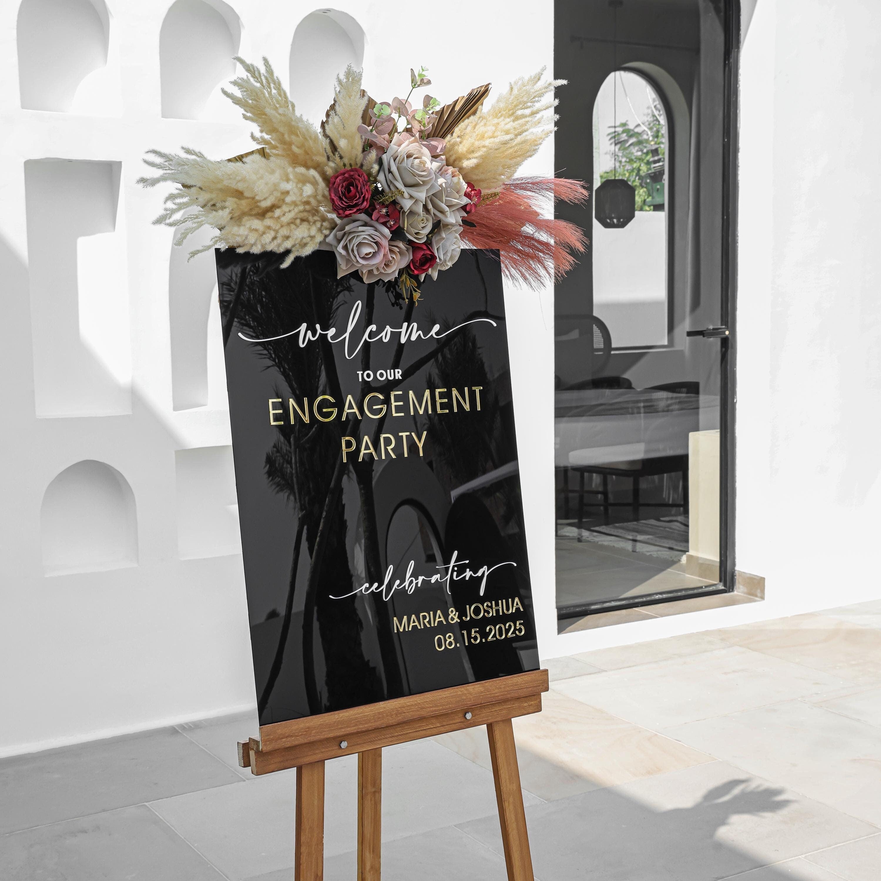 This modern wedding welcome sign is made out of Black acrylic sheet. The lettering is of high quality Mirror Gold and white acrylic to make it more beautiful and long lasting.