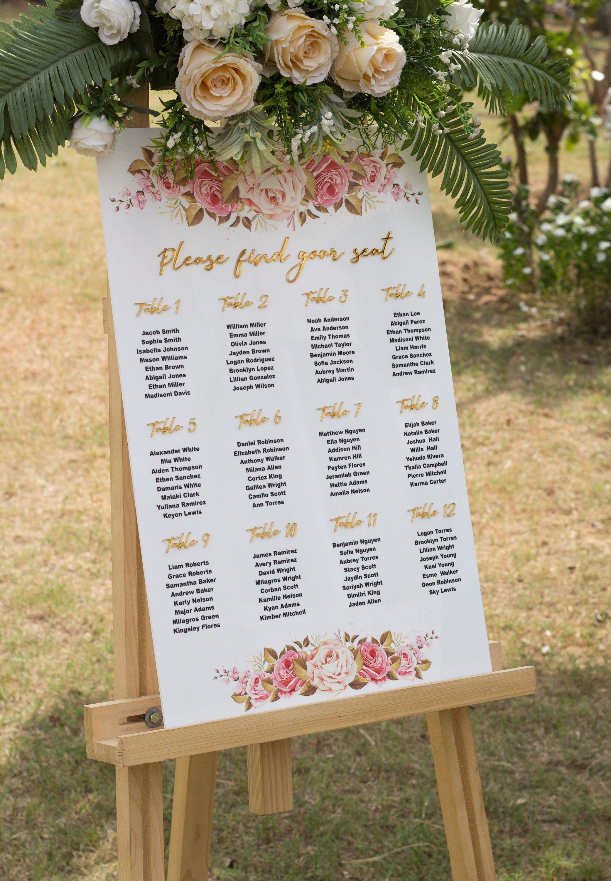 Personalized 3D Seating Chart and Welcome sign are a beautiful Wedding décor to welcome your guest. These modern wedding Signs are made out of acrylic sheet. The lettering is 3D mirror Gold, The floral is UV printed.