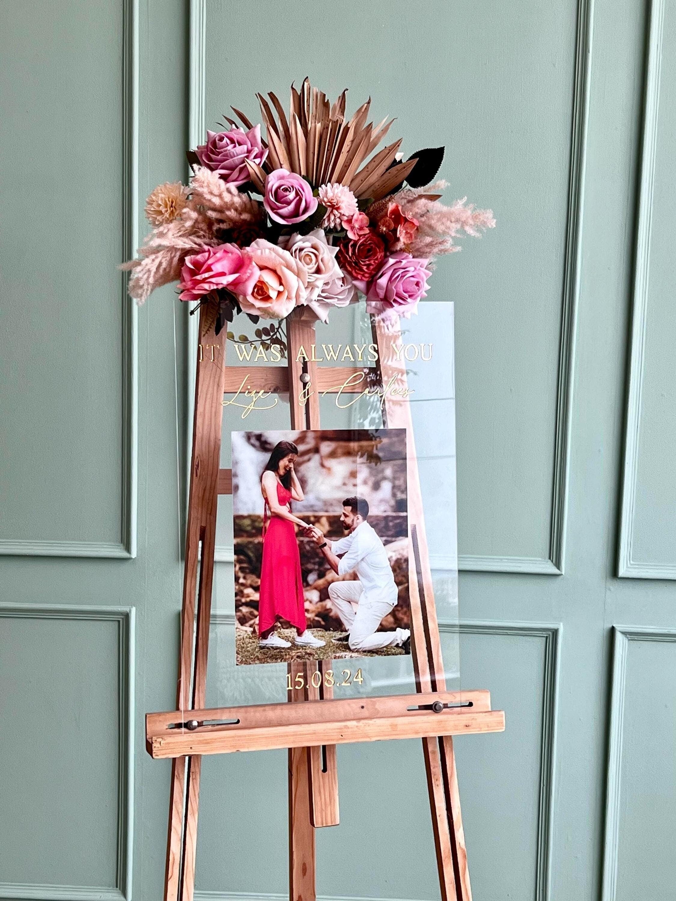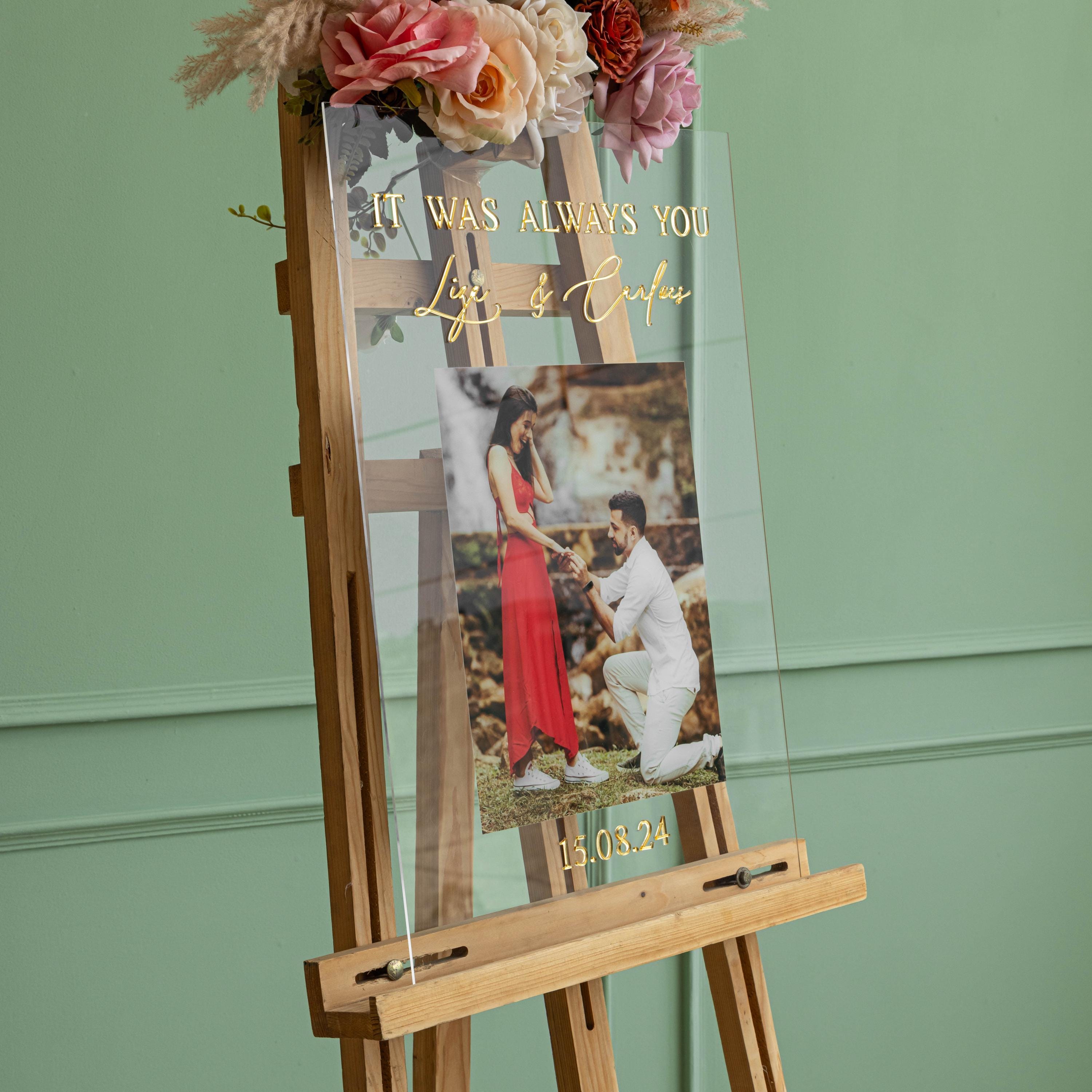 Personalized 3D Letters Photo Welcome signs are a beautiful Wedding décor to welcome your guest. This modern wedding welcome sign is made out of acrylic sheet. The lettering is of high quality Mirror gold acrylic and photo is UV printed to make it more beautiful and long lasting. We do not use vinyl or stickers.