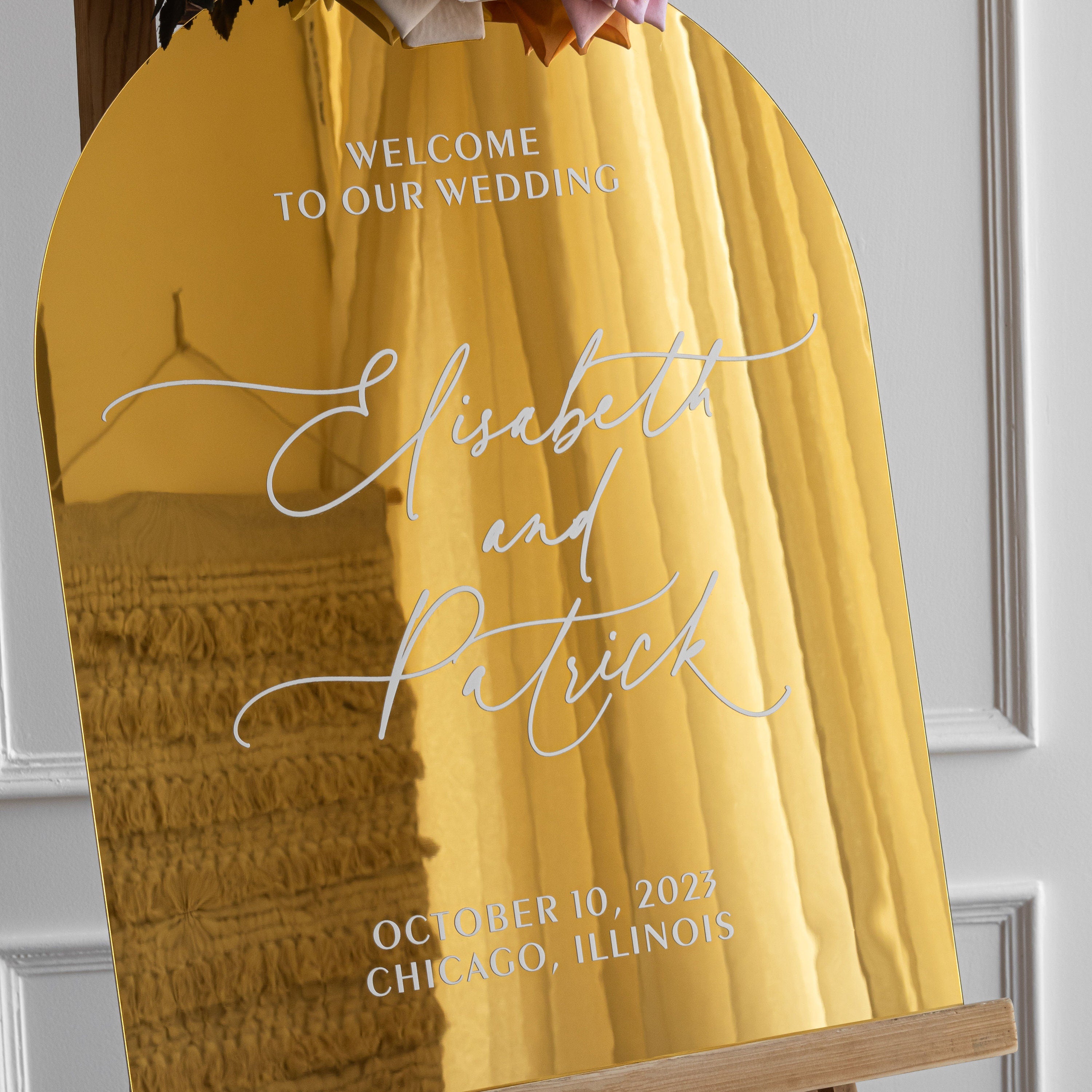 Arched Gold Mirror Acrylic Welcome Sign