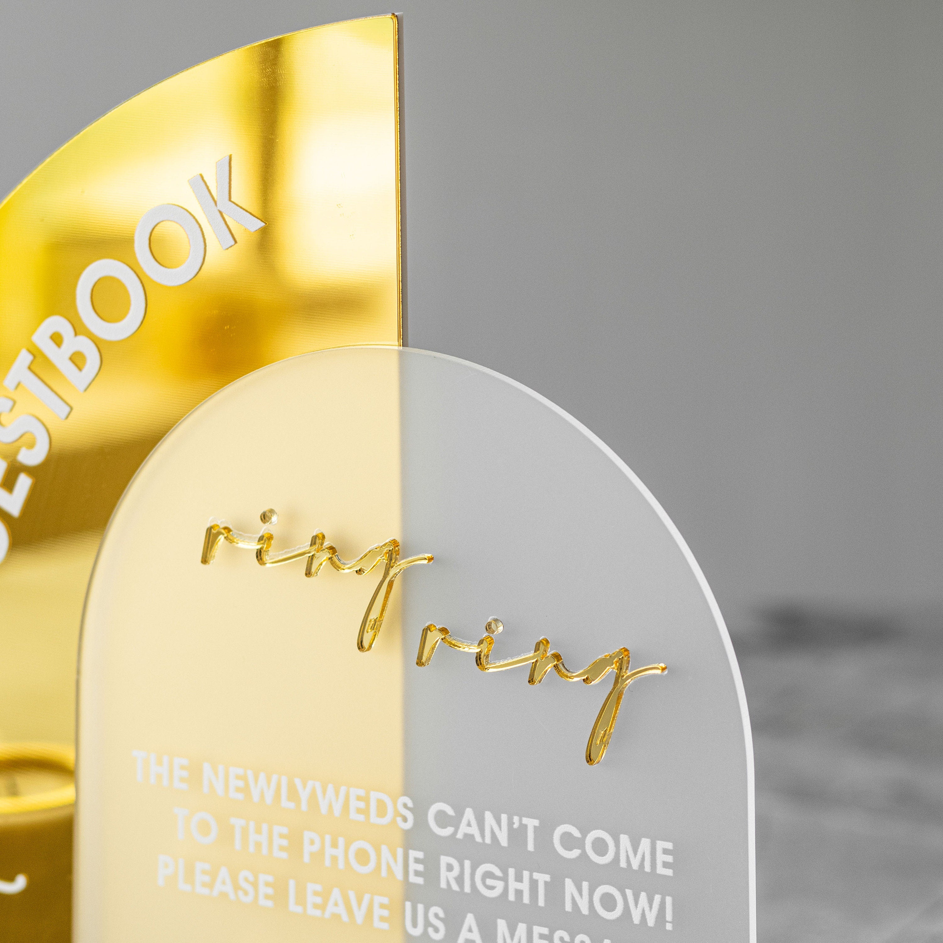 Introducing our exquisite Wedding Frosted and Mirror Gold Acrylic Audio Guestbook Sign, a perfect blend of elegance and modern charm. Handcrafted with meticulous attention to detail, this stunning sign will elevate your wedding decor, adding a touch of sophistication to your special day.