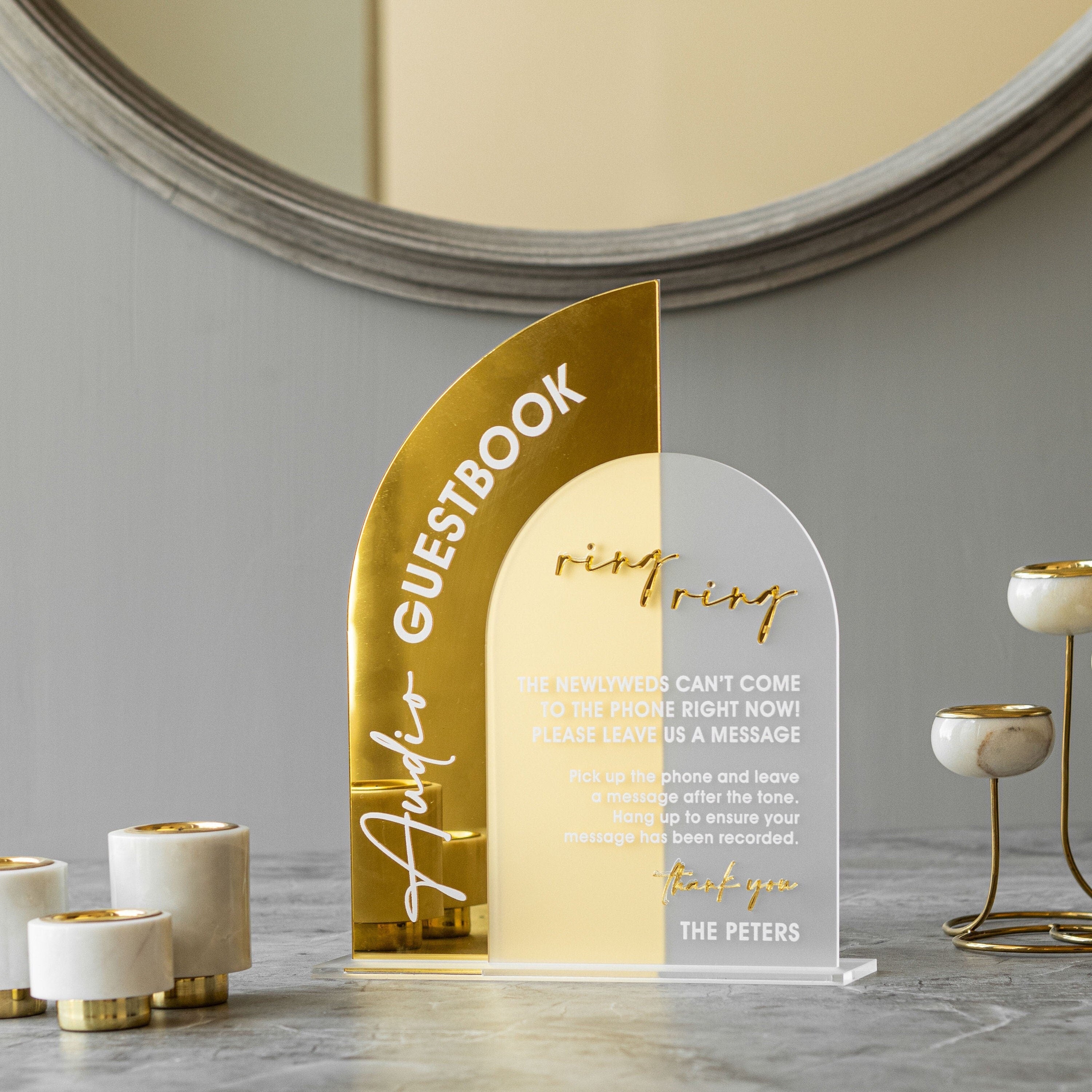 Audio Guestbook Sign, Wedding Guestbook Sign, Telephone Guest Book Sign, Wedding Reception Decor, Wedding Signage, Gold Mirror Wedding Signs