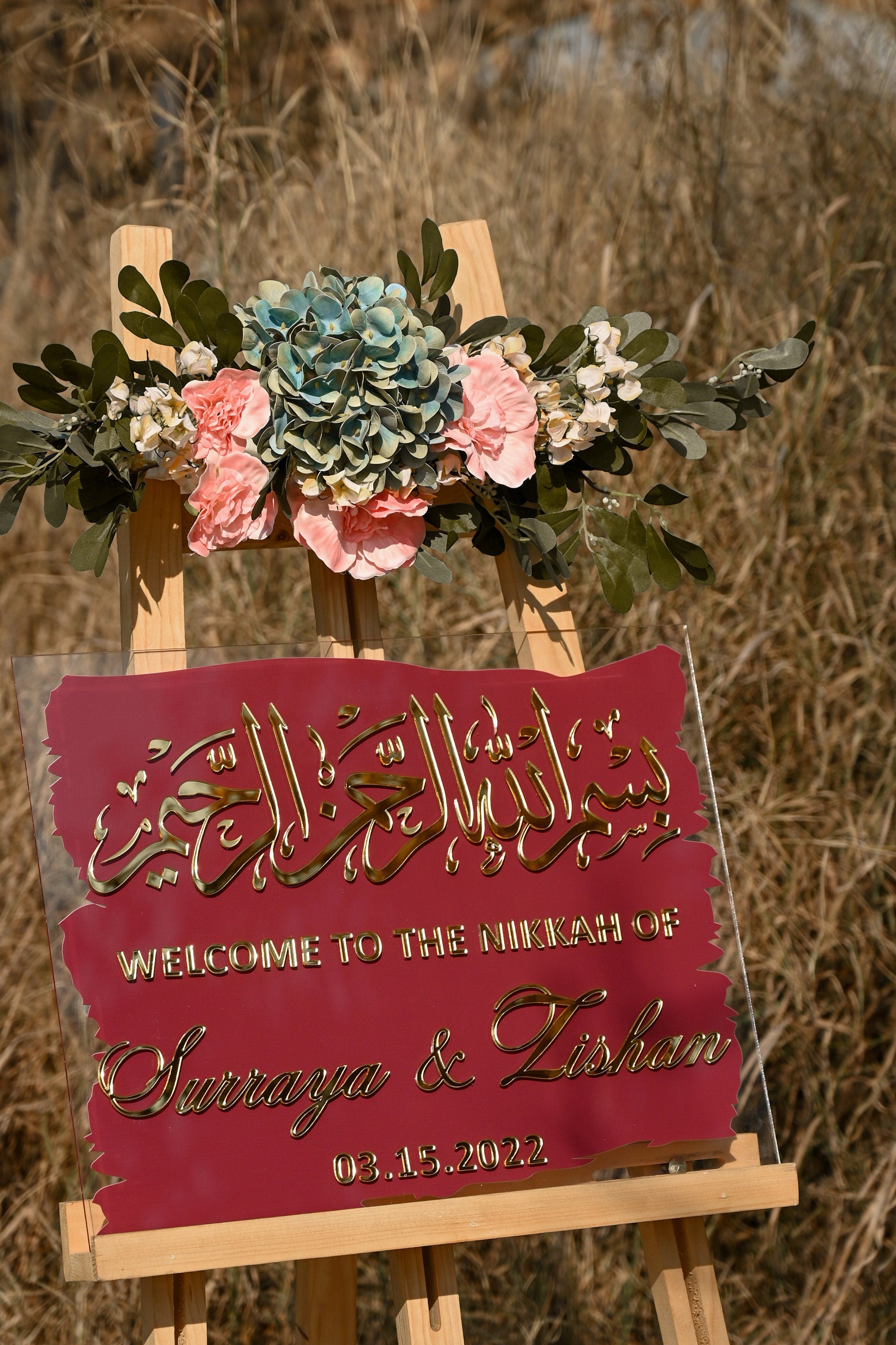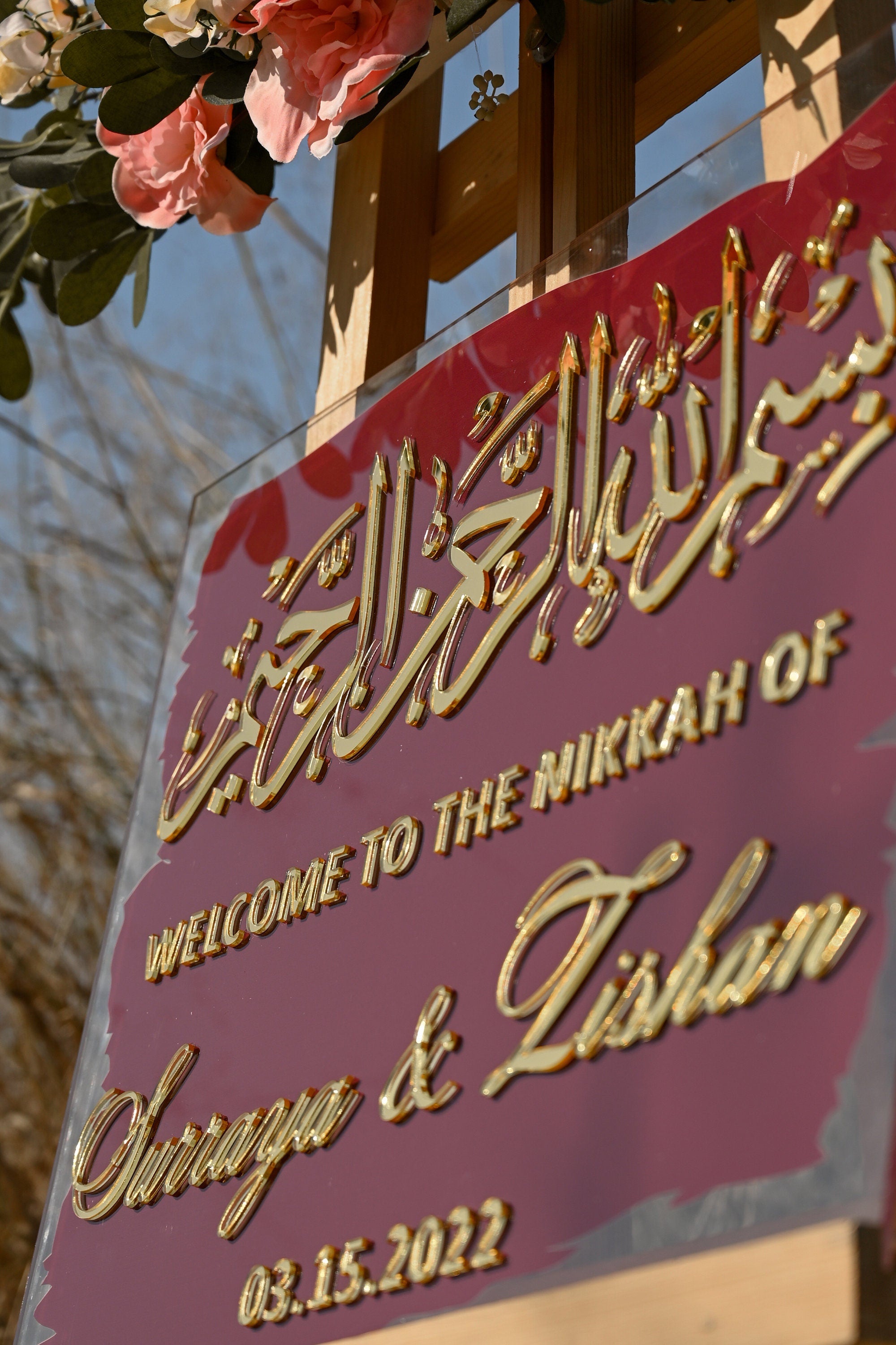 This modern Arabic wedding welcome sign is made out of acrylic sheet. The lettering is of high quality Mirror Gold acrylic to make it more beautiful and long lasting.