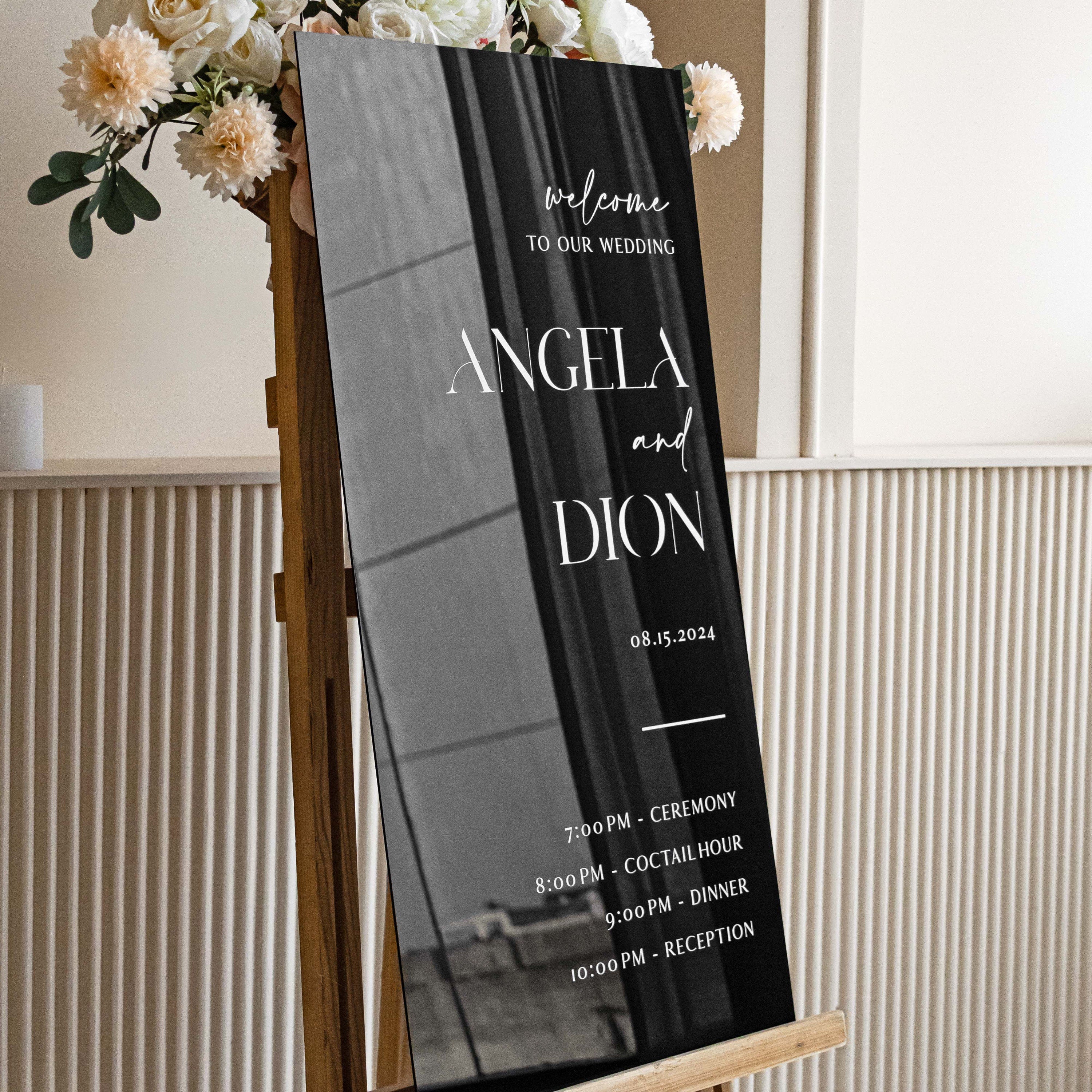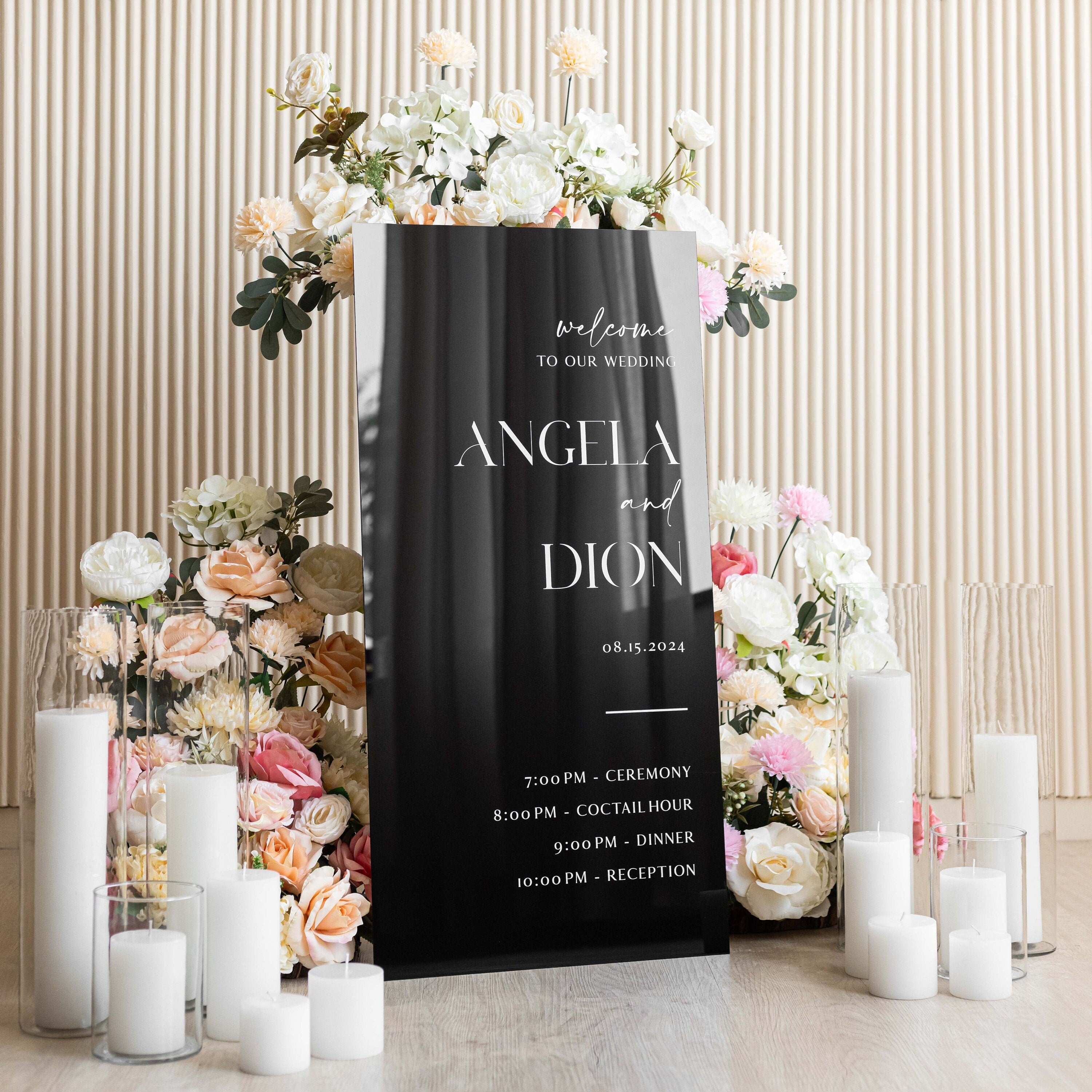 This modern wedding welcome sign is made out of Black acrylic sheet. The lettering is of high quality white UV printing to make it more beautiful and long lasting.
