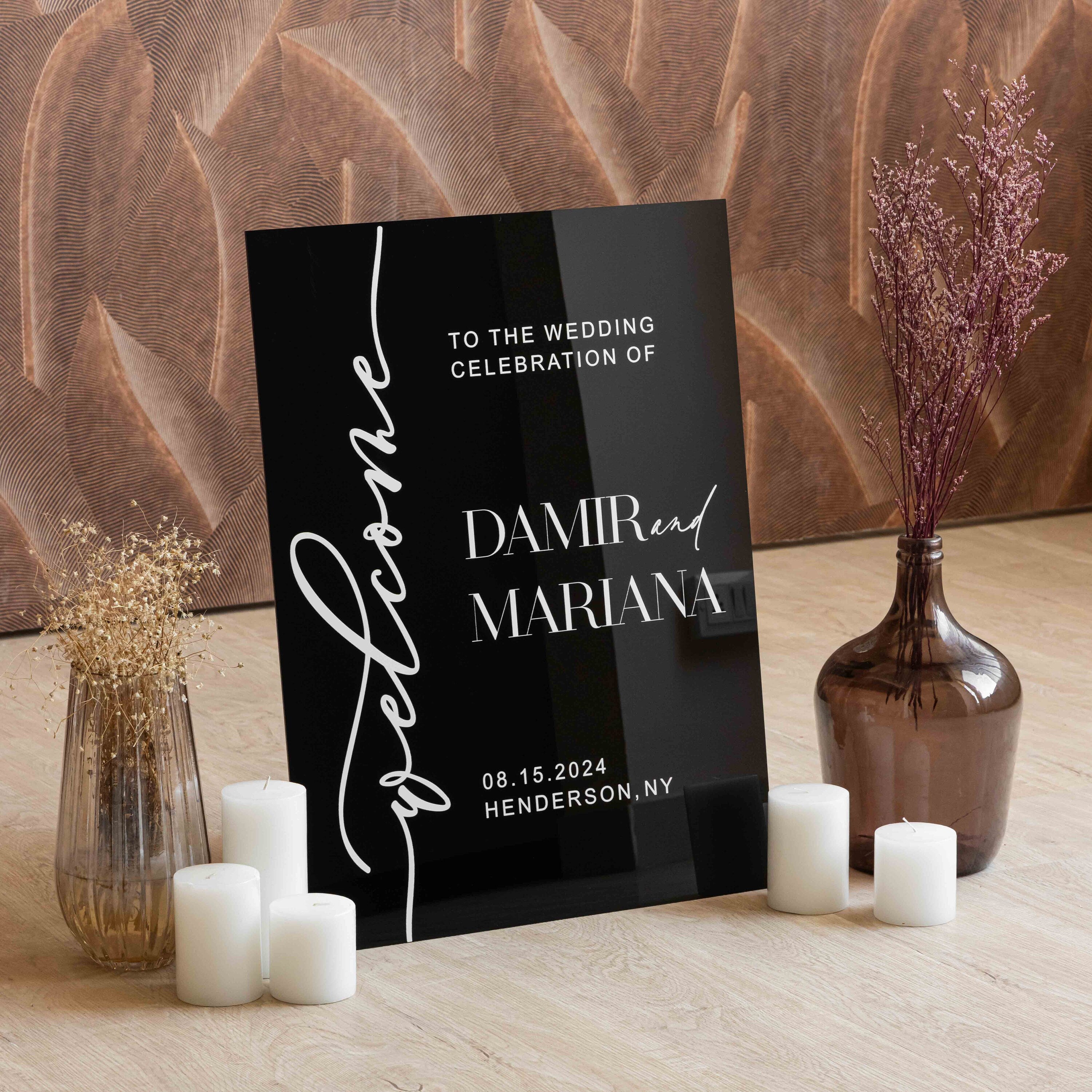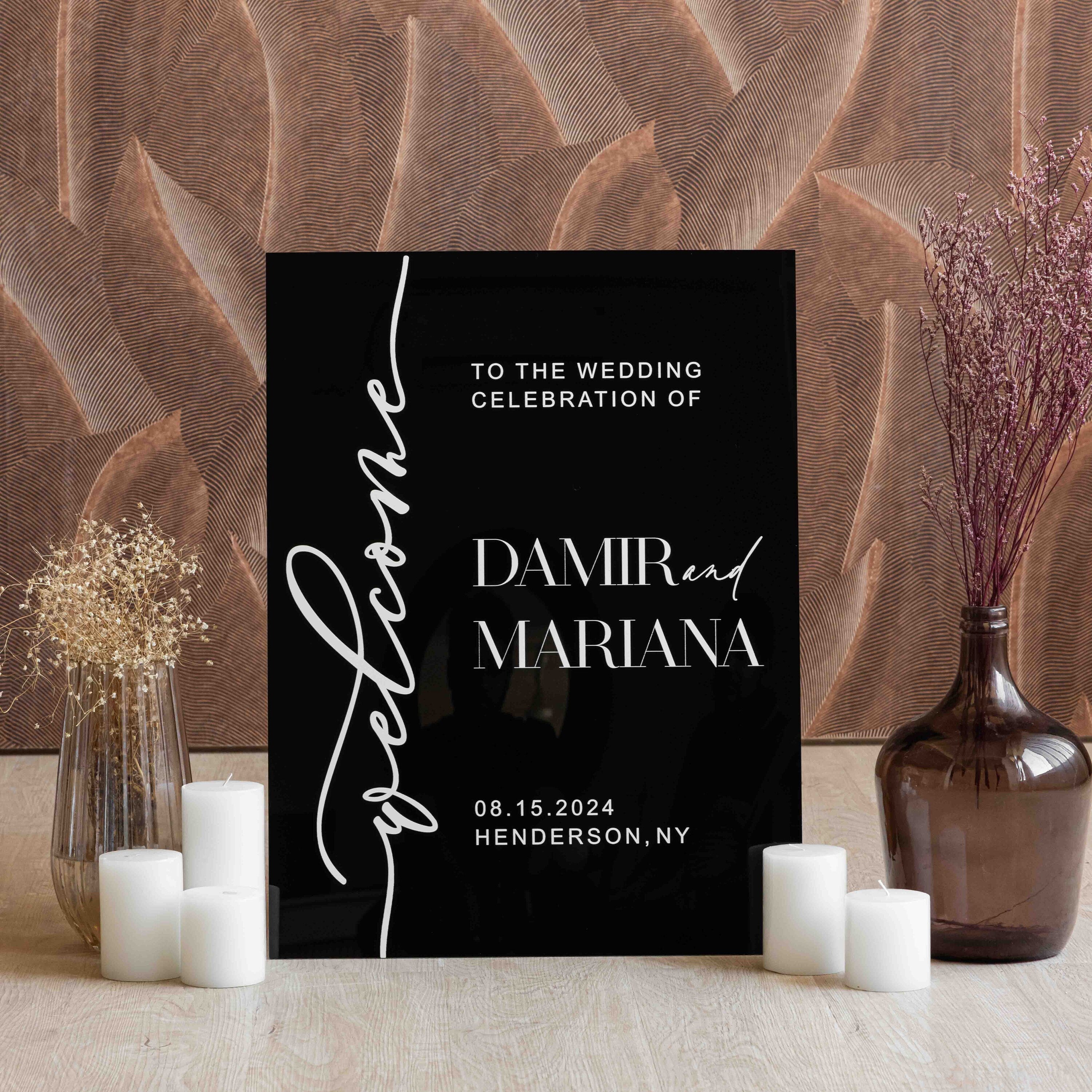 Personalized 3D Welcome signs are a beautiful Wedding décor to welcome your guest. This modern wedding welcome sign is made out of Black acrylic sheet. The lettering is of high quality white uv printing to make it more beautiful and long lasting. We do not use vinyl or stickers.
