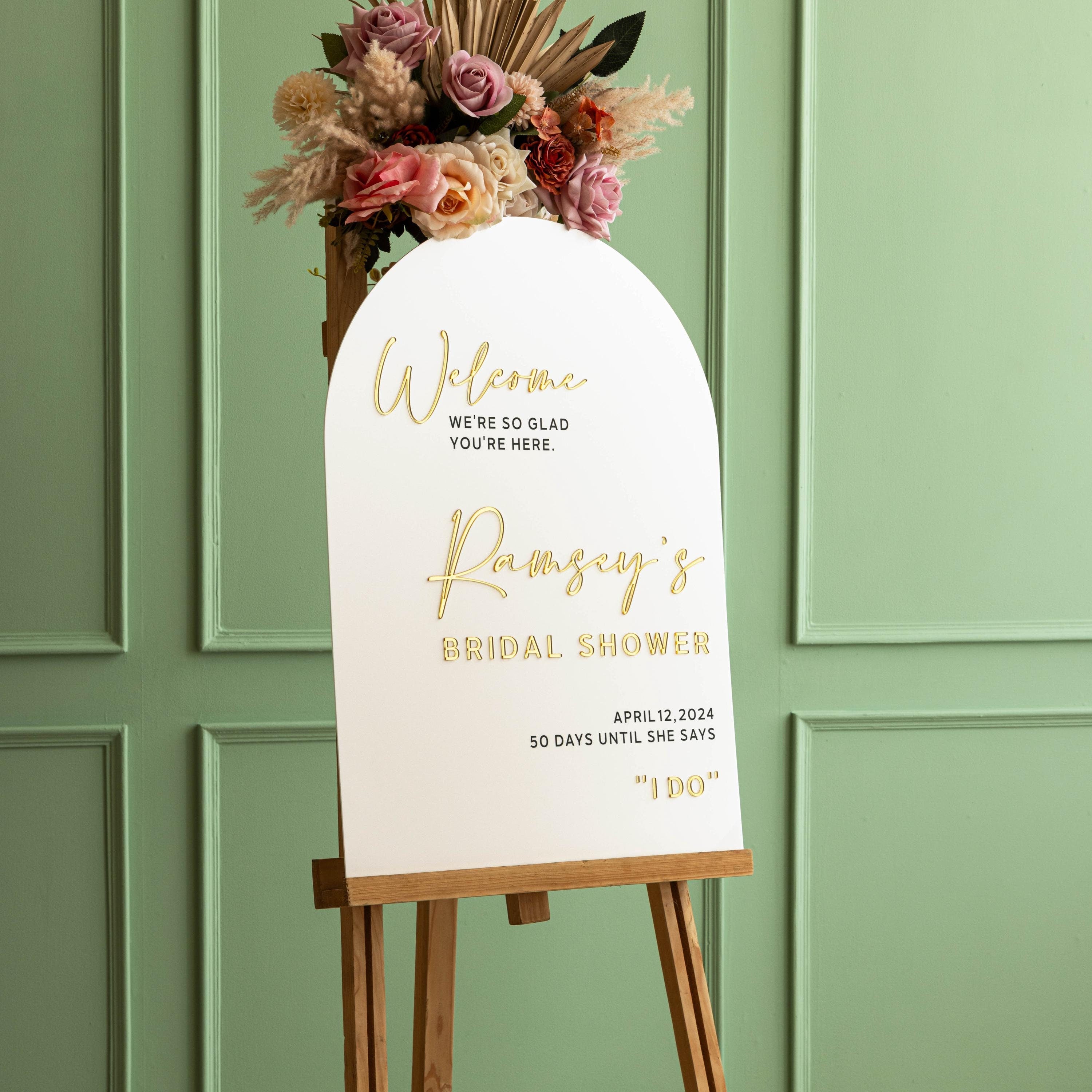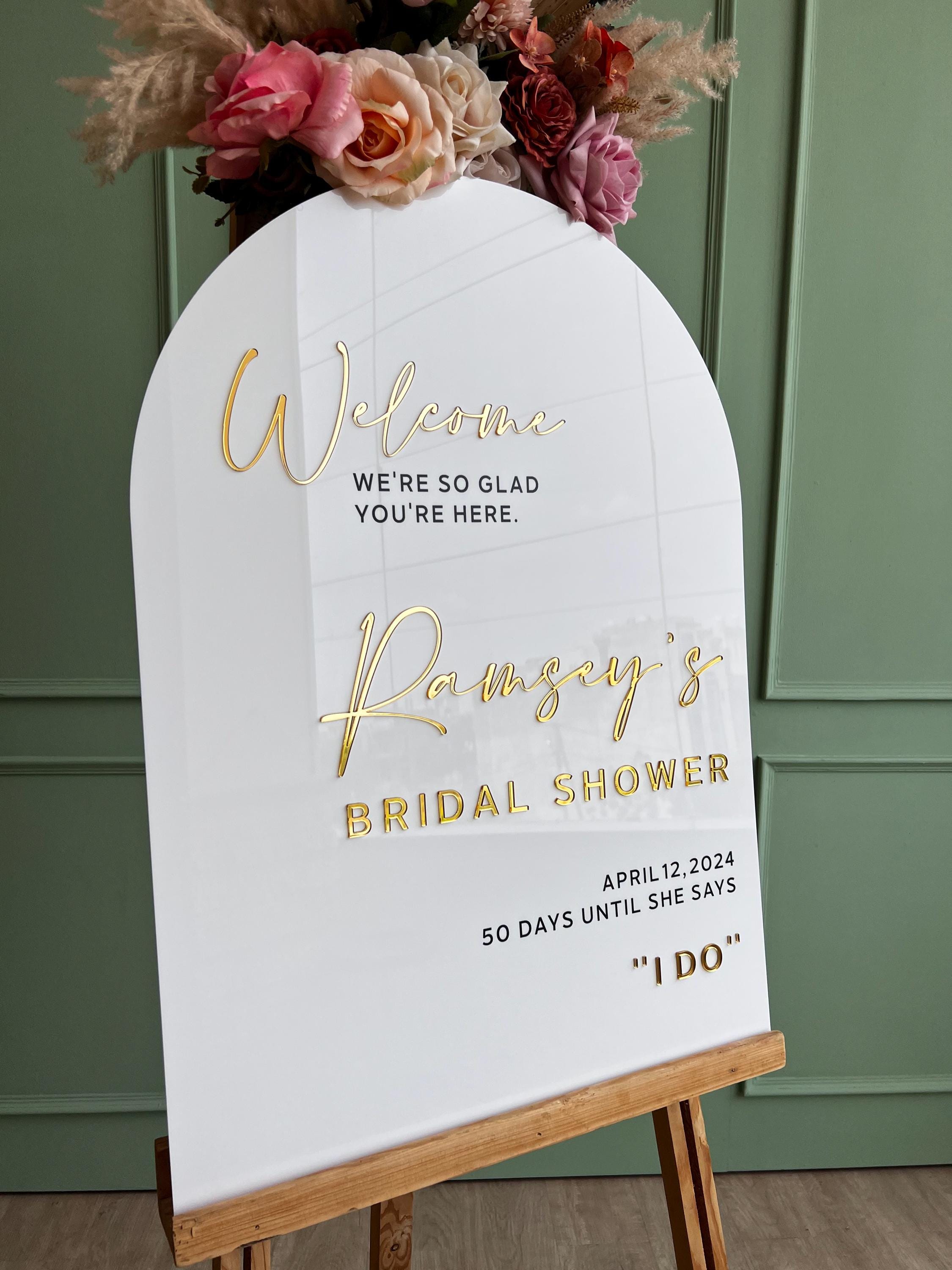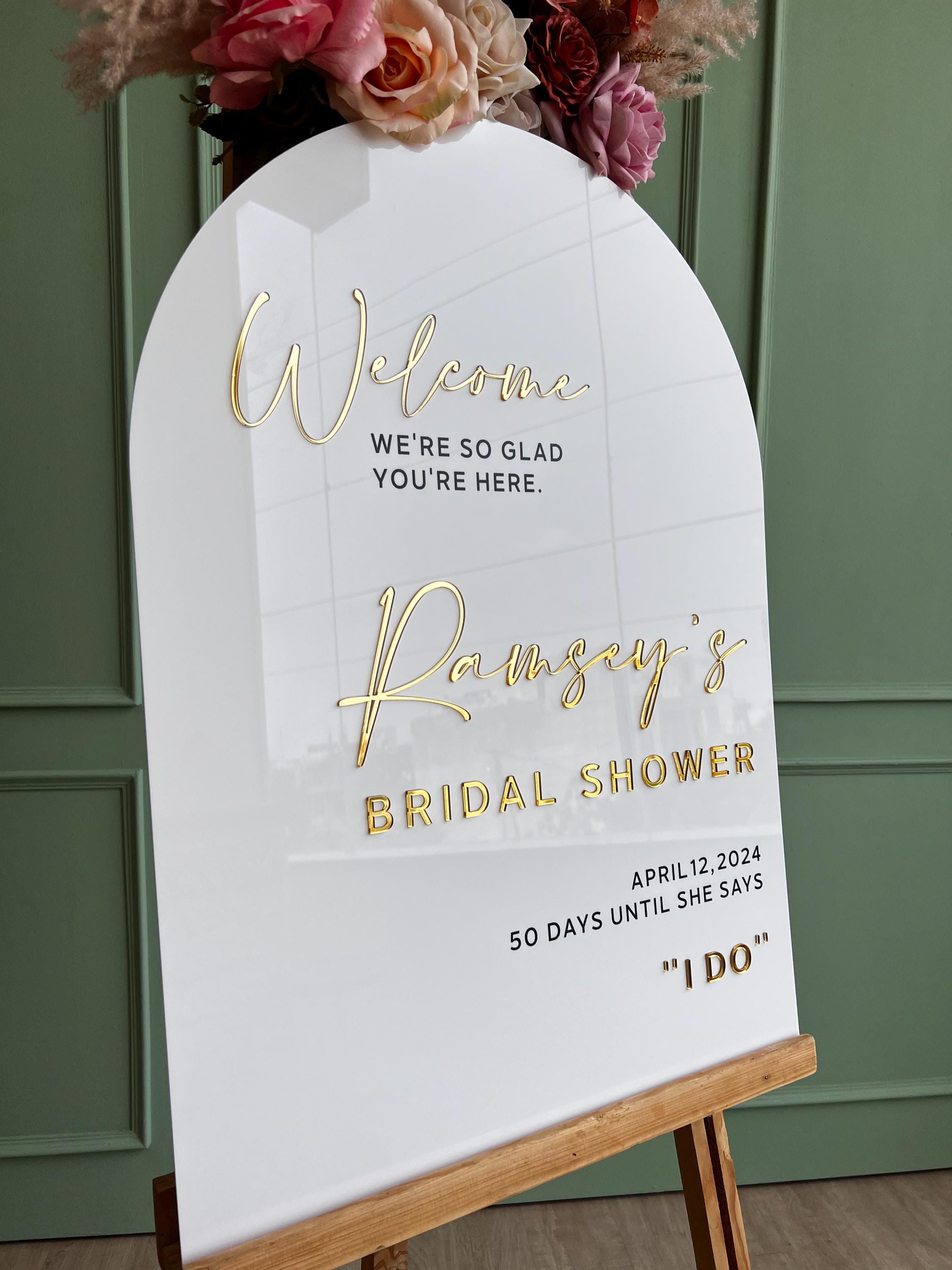Personalized 3D Welcome signs are a beautiful décor to welcome your guest. This modern Bridal Shower welcome sign is made out of acrylic sheet. The lettering is of high quality Mirror gold acrylic to make it more beautiful and long lasting. We do not use vinyl or stickers.