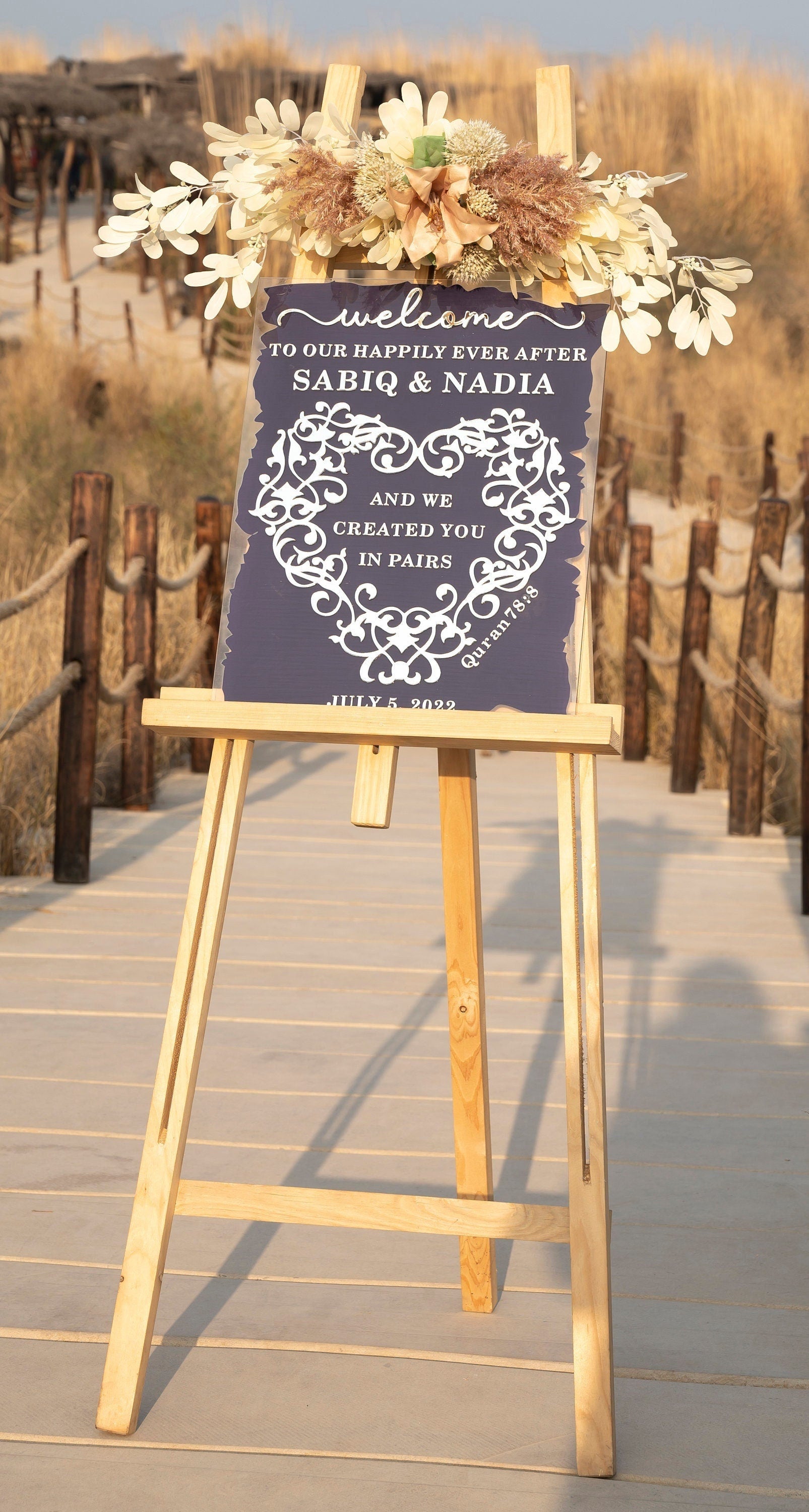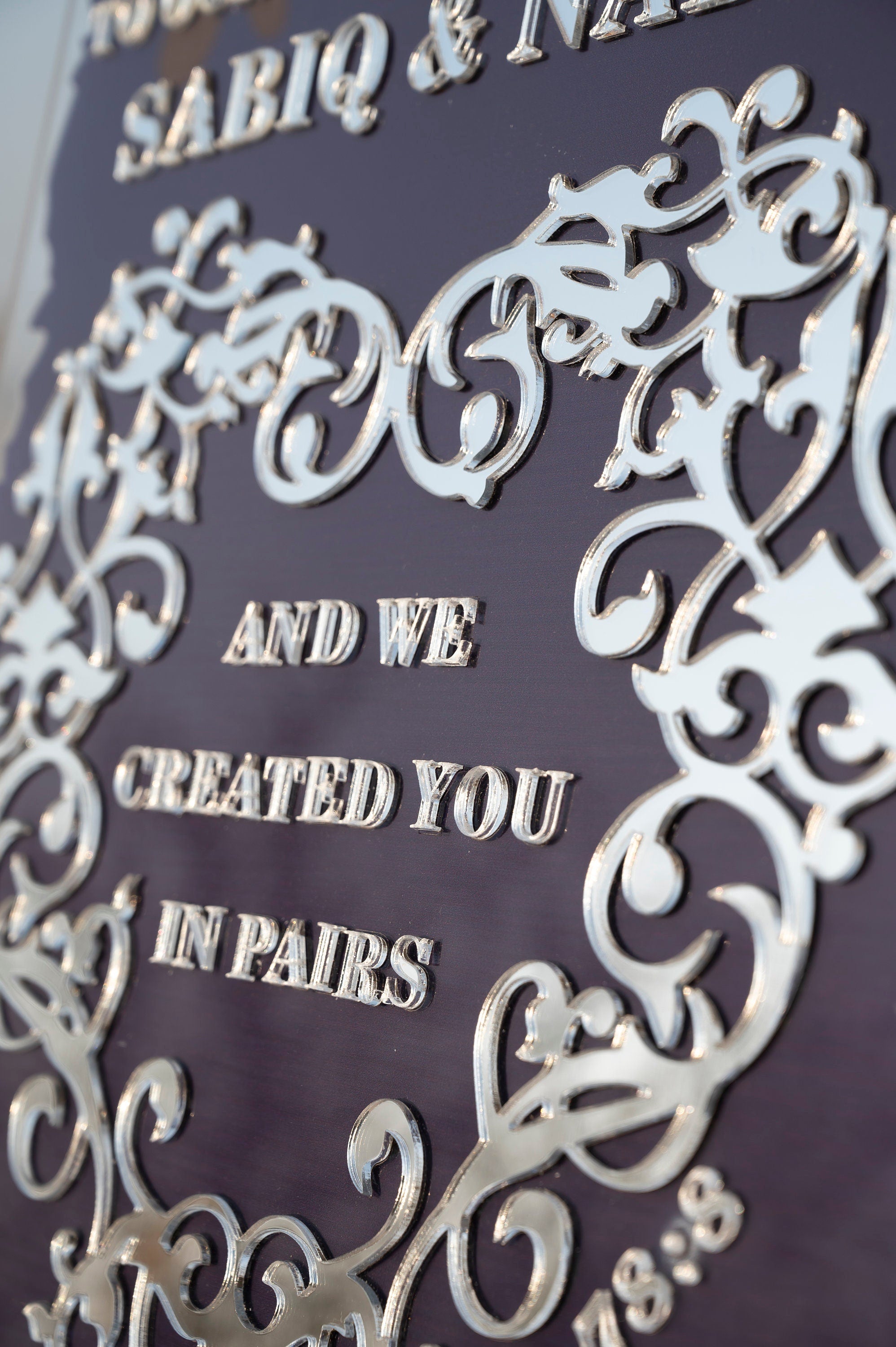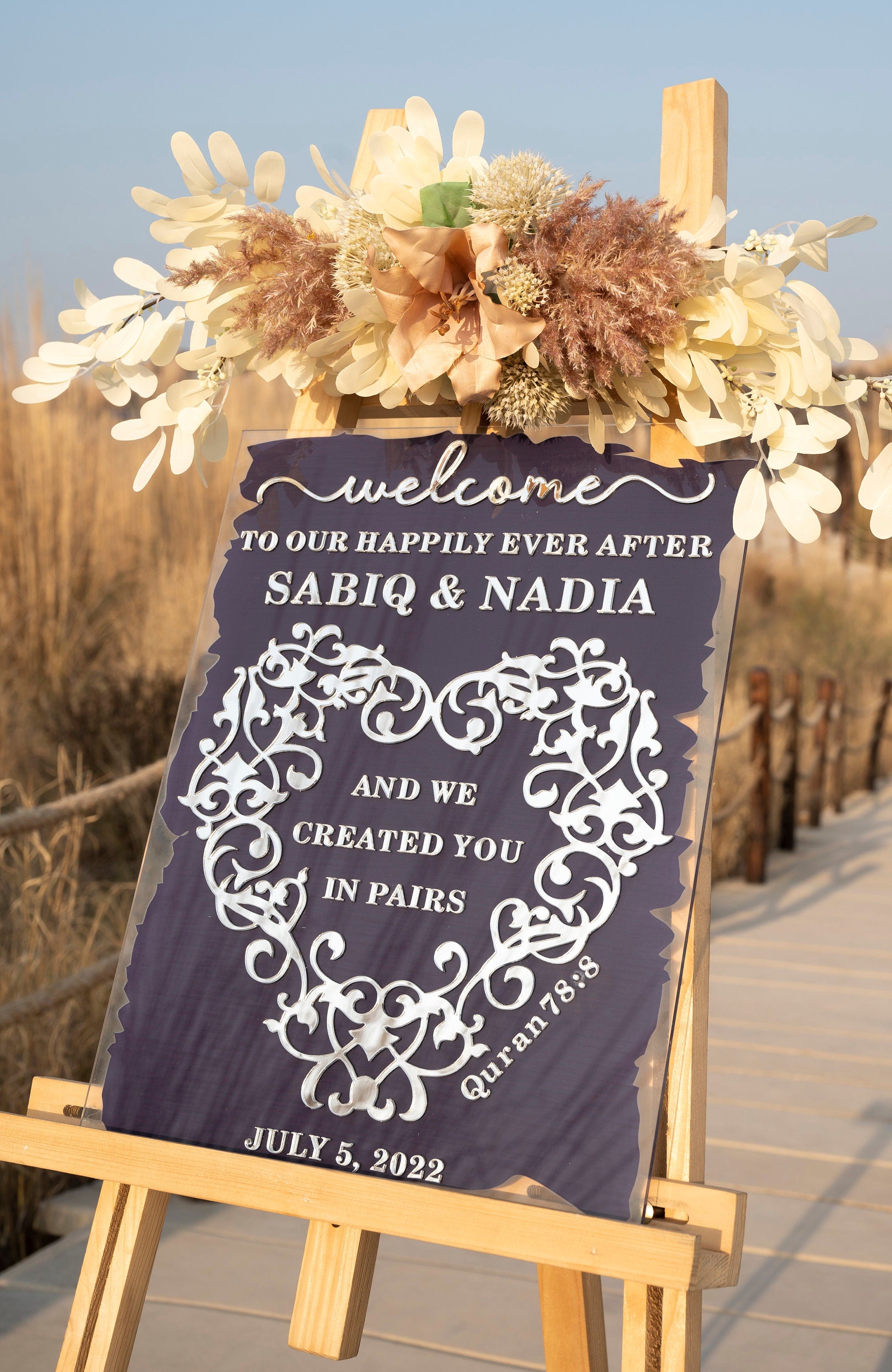 Personalized 3D Arabic Welcome signs are a beautiful Wedding décor to welcome your guest. This modern wedding welcome sign is made out of acrylic sheet. The lettering is of high quality Mirror Silver acrylic to make it more beautiful and long lasting.