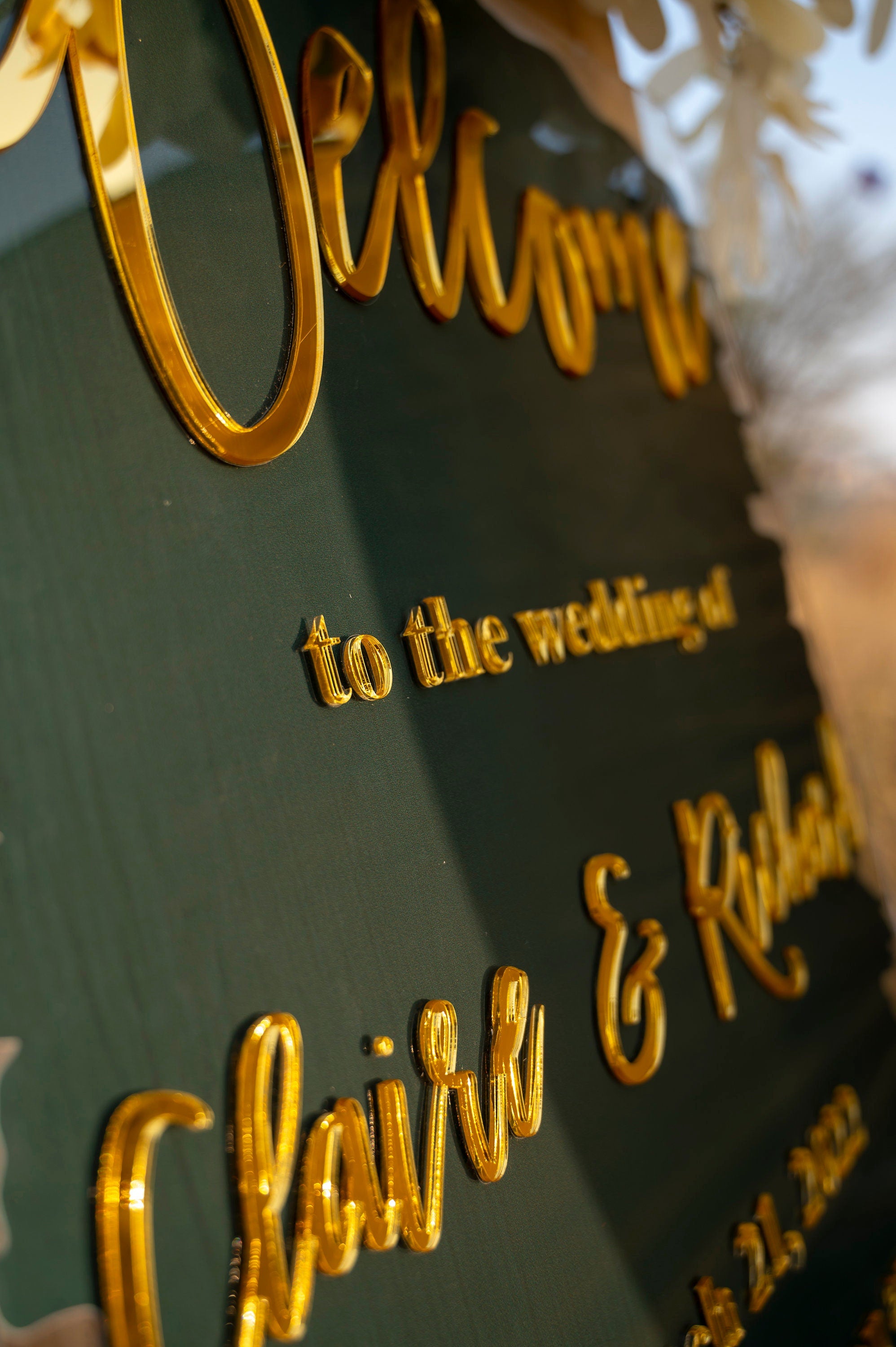 Material :- Clear Acrylic raised with 3D Mirror Gold acrylic lettering and the back is painted with your desired colors.