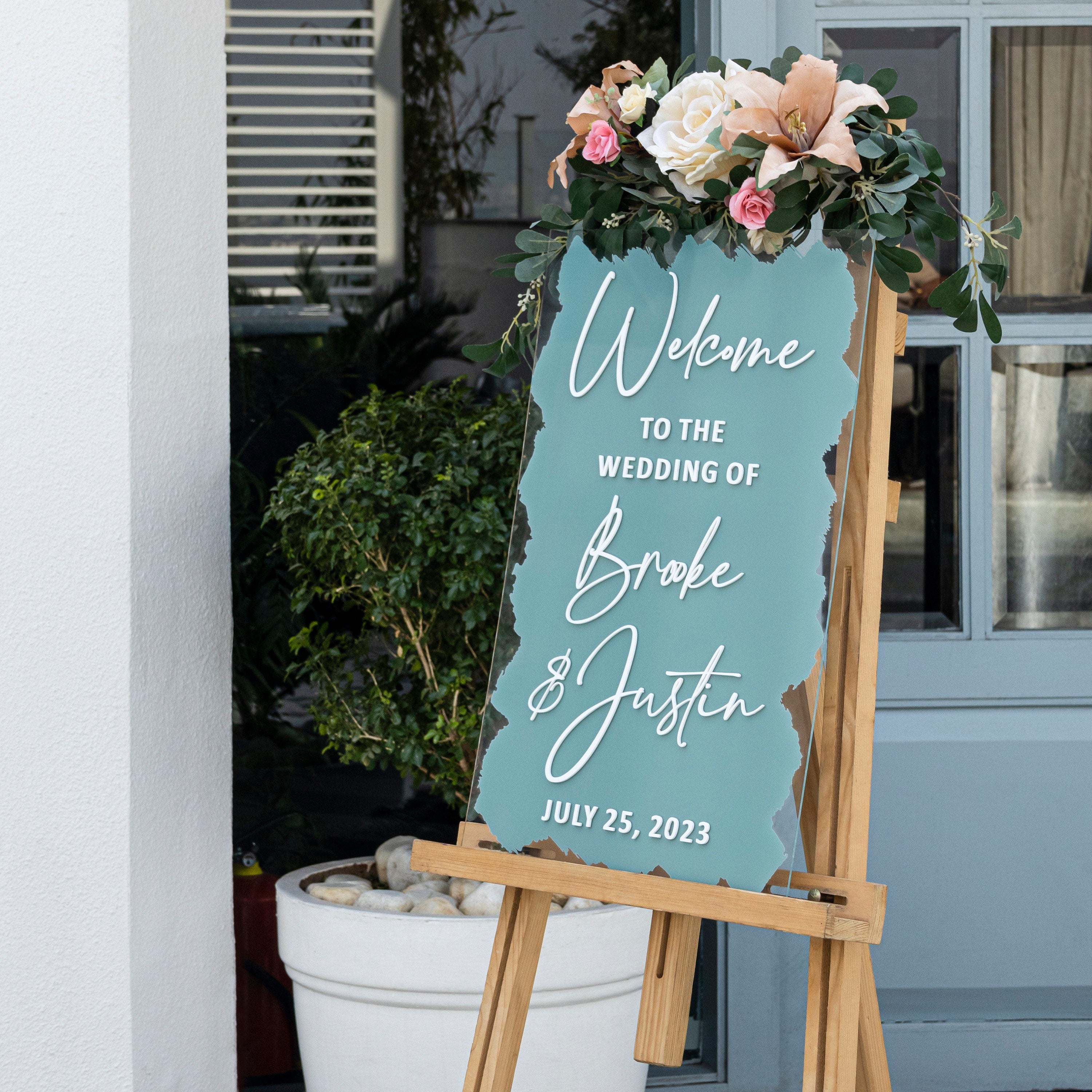 Personalized 3D Welcome signs are a beautiful Wedding décor to welcome your guest. This modern wedding welcome sign is made out of Clear acrylic sheet and back is painted in your desired color. The lettering is of high quality Mirror Gold acrylic to make it more beautiful and long lasting. we do not use vinyl or stickers.