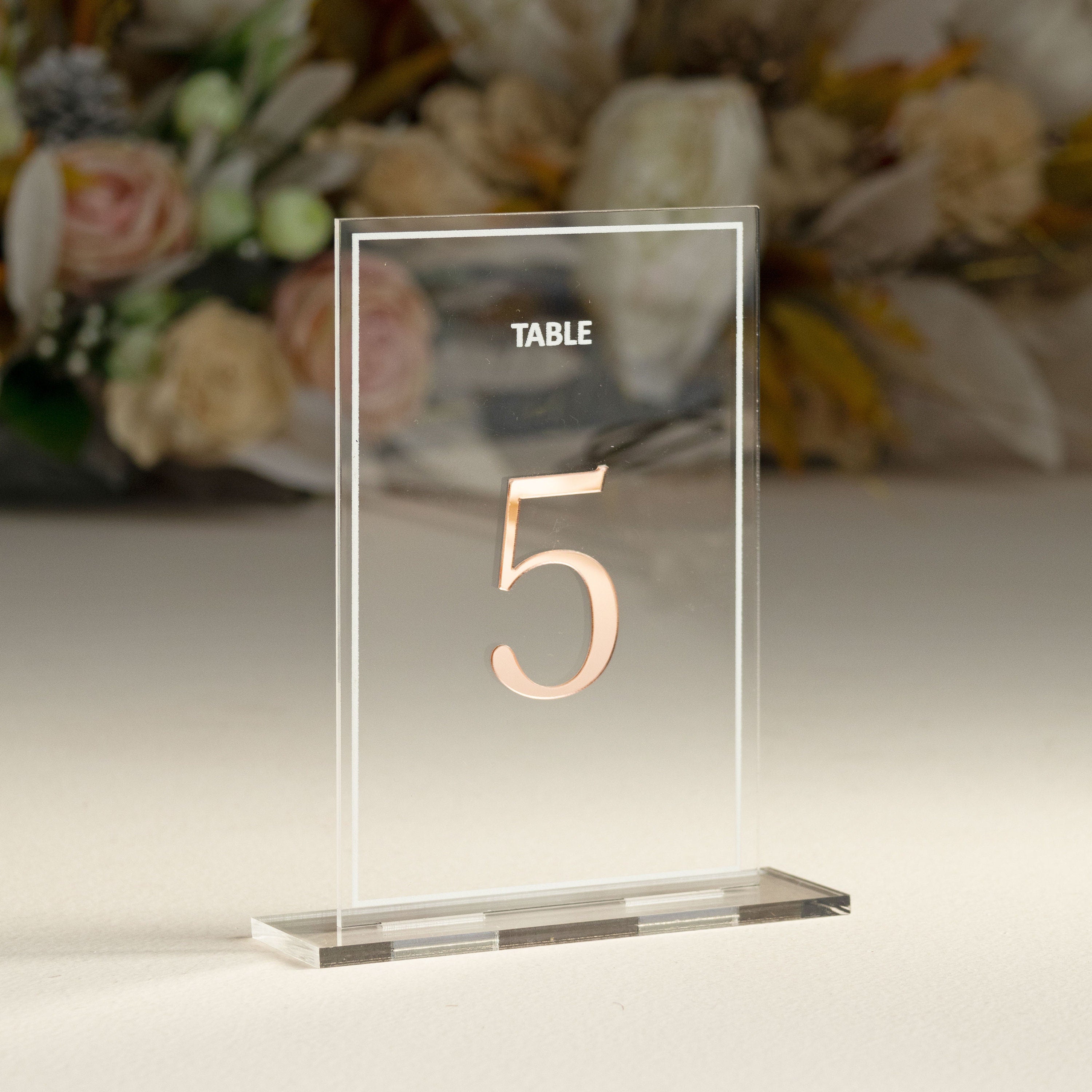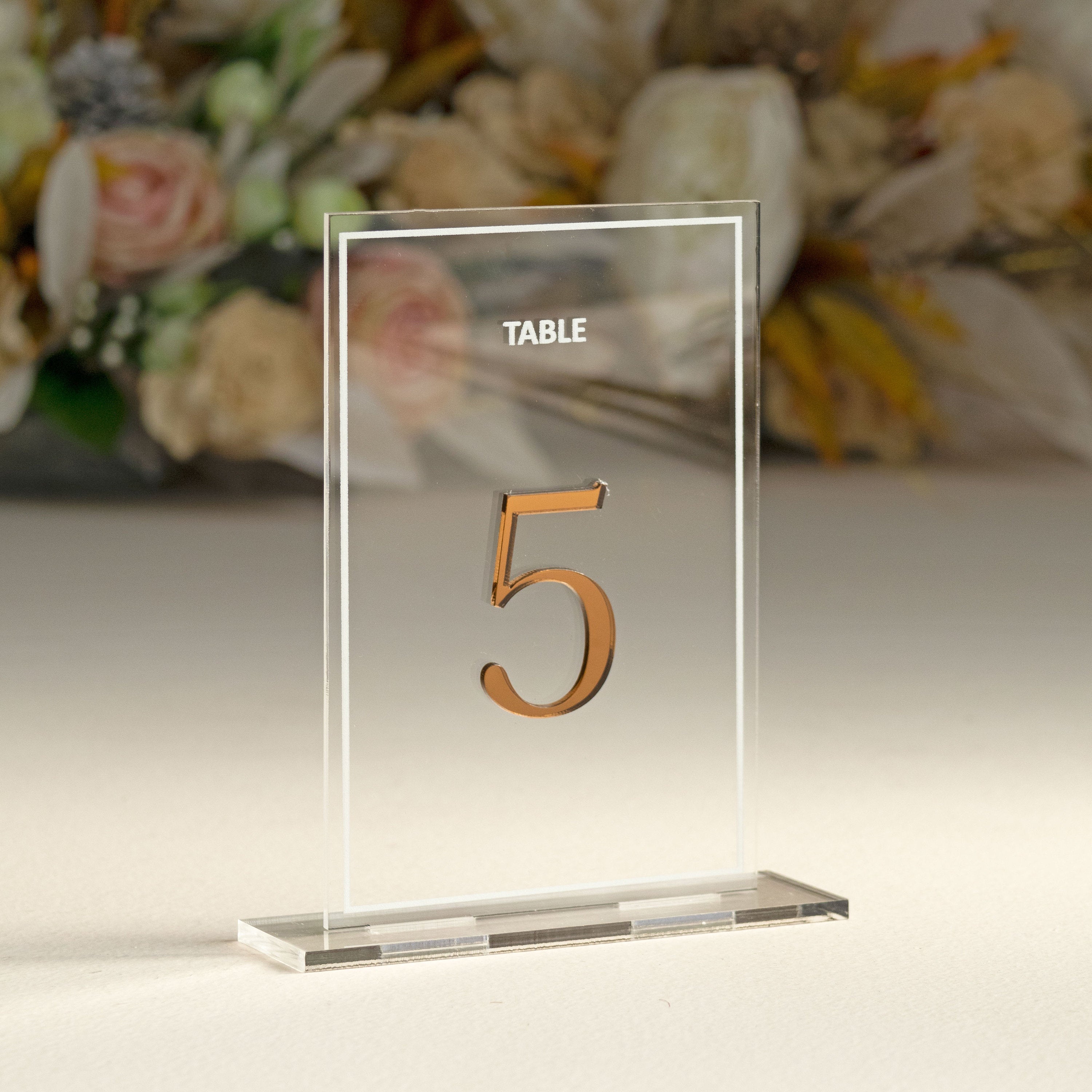 Clear and Mirror Gold Acrylic Signs - Gold Wedding Table Signs - Wedding Table Decor, Gold Table Numbers, Modern Wedding Decor AOA