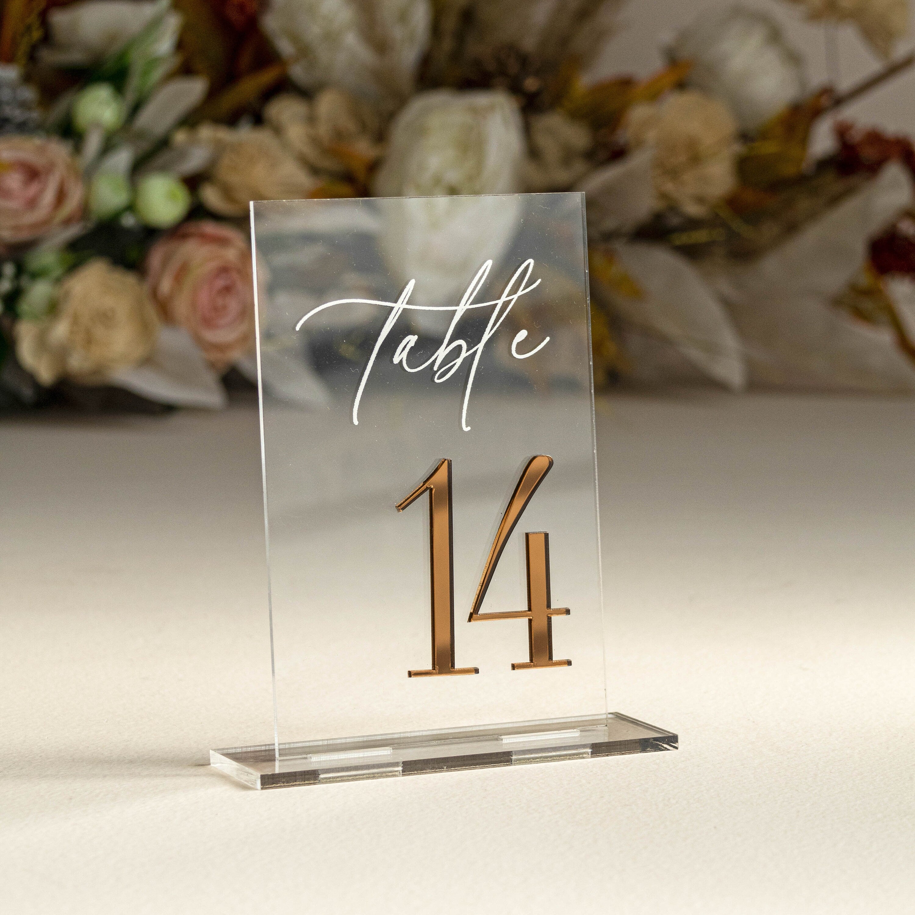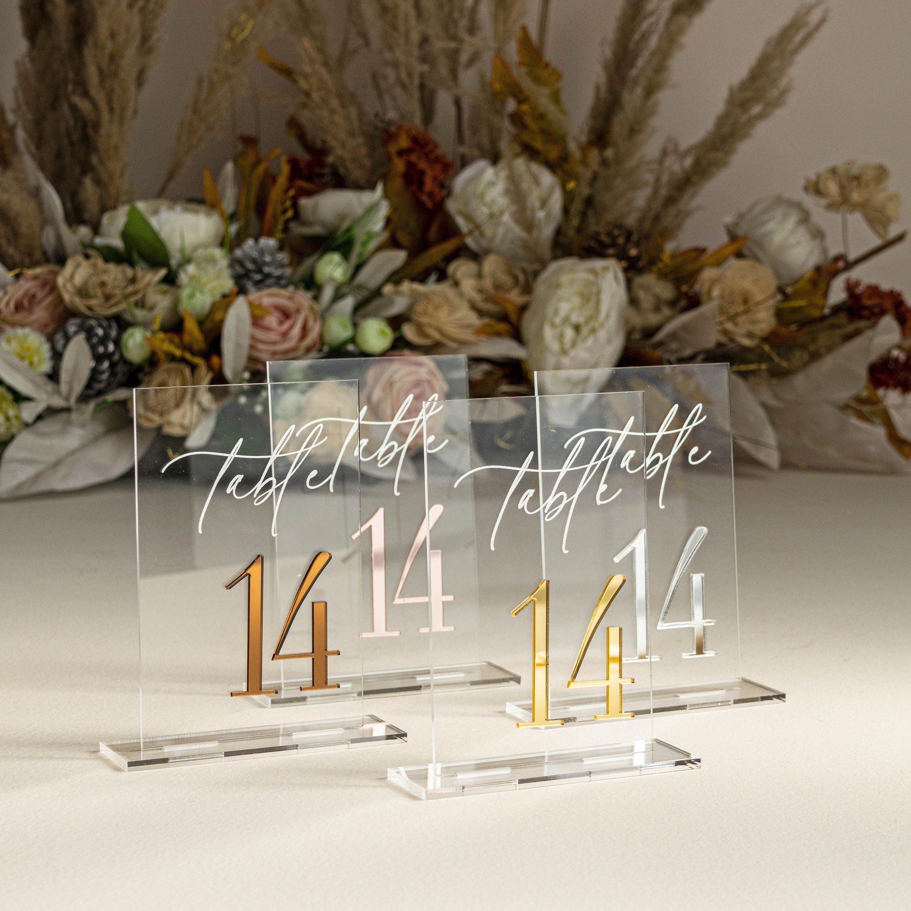 Clear and Mirror Gold Acrylic Signs - Gold Wedding Table Signs - Wedding Table Decor, Gold Table numbers, Modern wedding Table decor AOA
