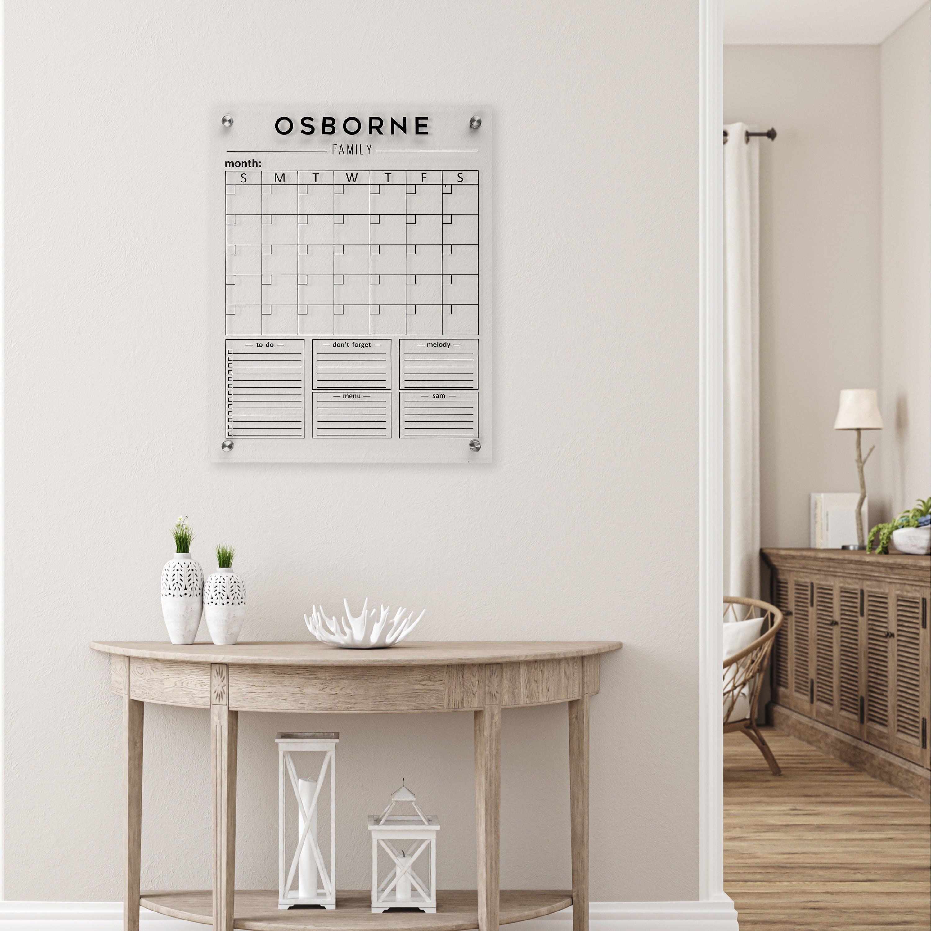 Dry Erase Monthly Calendar, Personalize Wall Planner