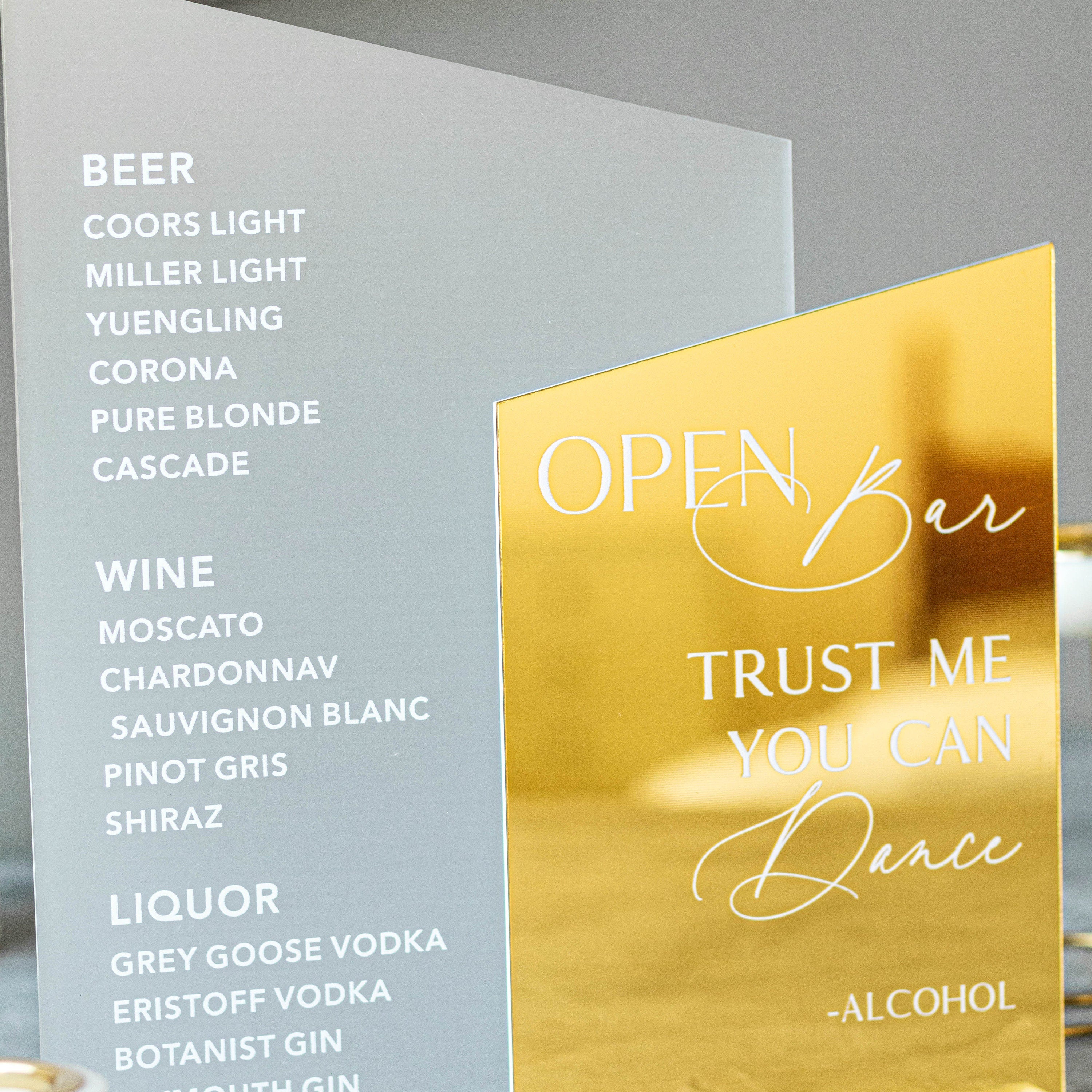 Open Bar Arched Wedding Sign, Open Bar Acrylic Sign, Wedding Table Decor, Gold Mirror Wedding Bar Sign , Gold Acrylic Drinks Sign, Wedding Bar signs