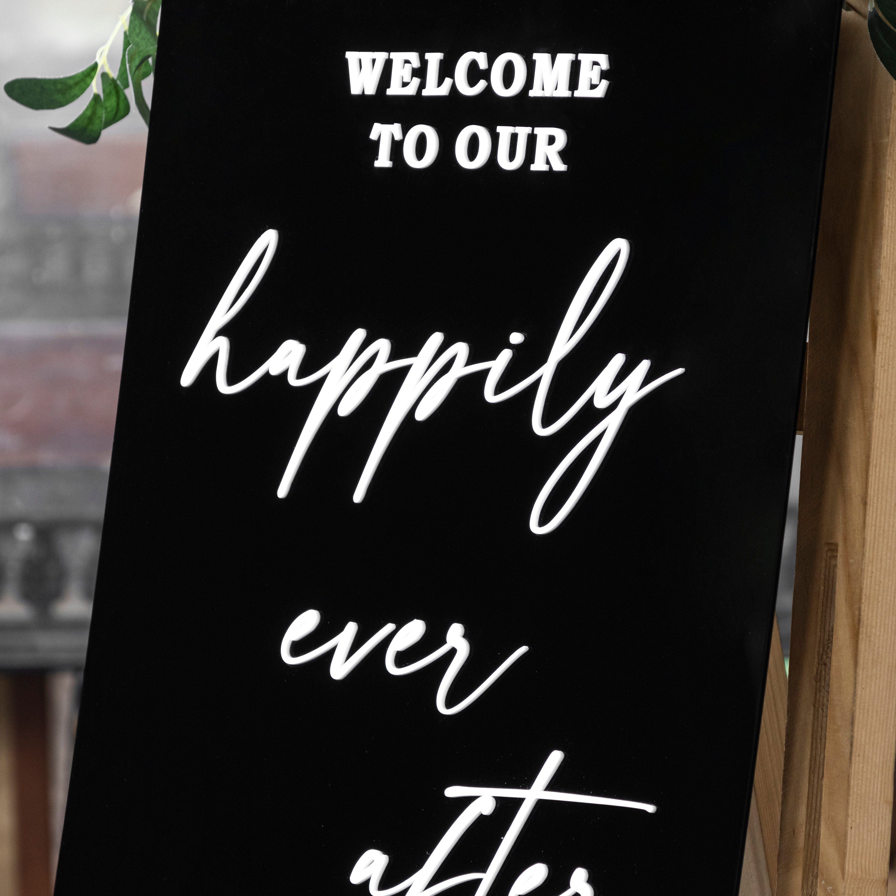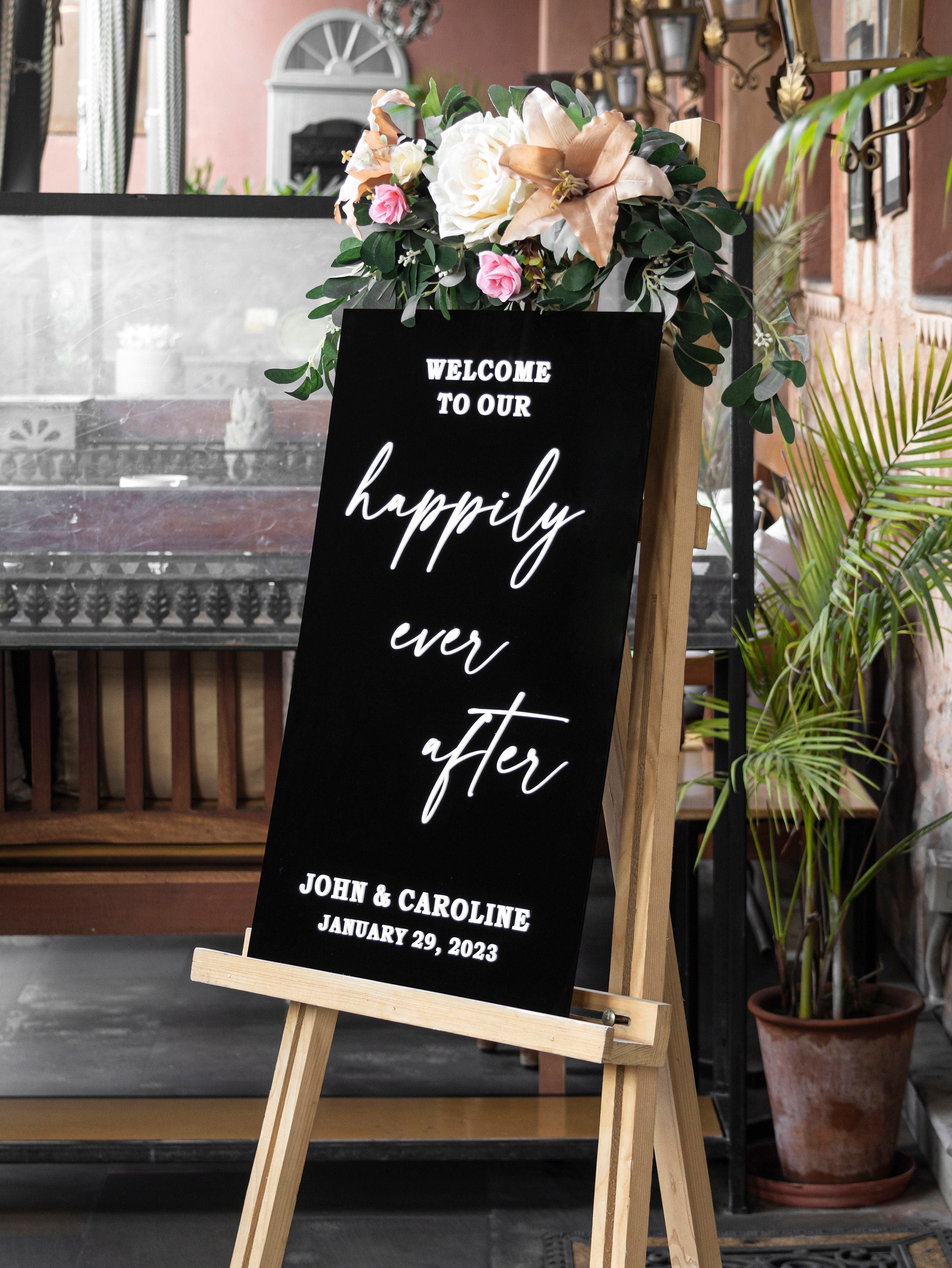 This modern wedding welcome sign is made out of Black acrylic sheet. The lettering is of high quality white acrylic to make it more beautiful and long lasting.