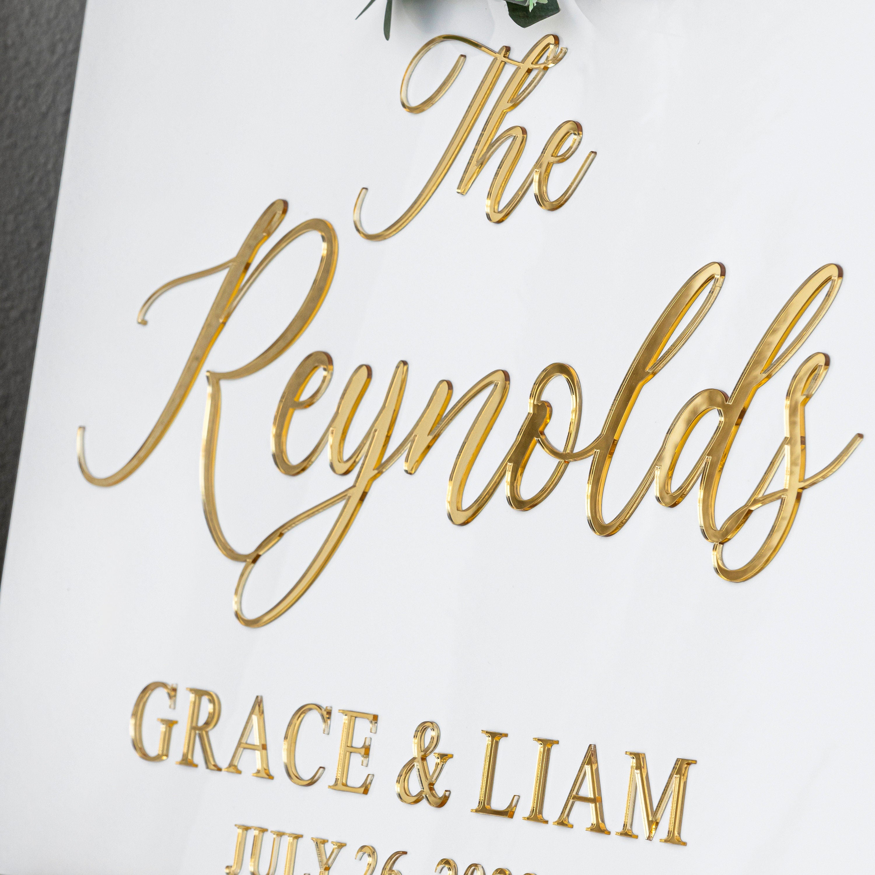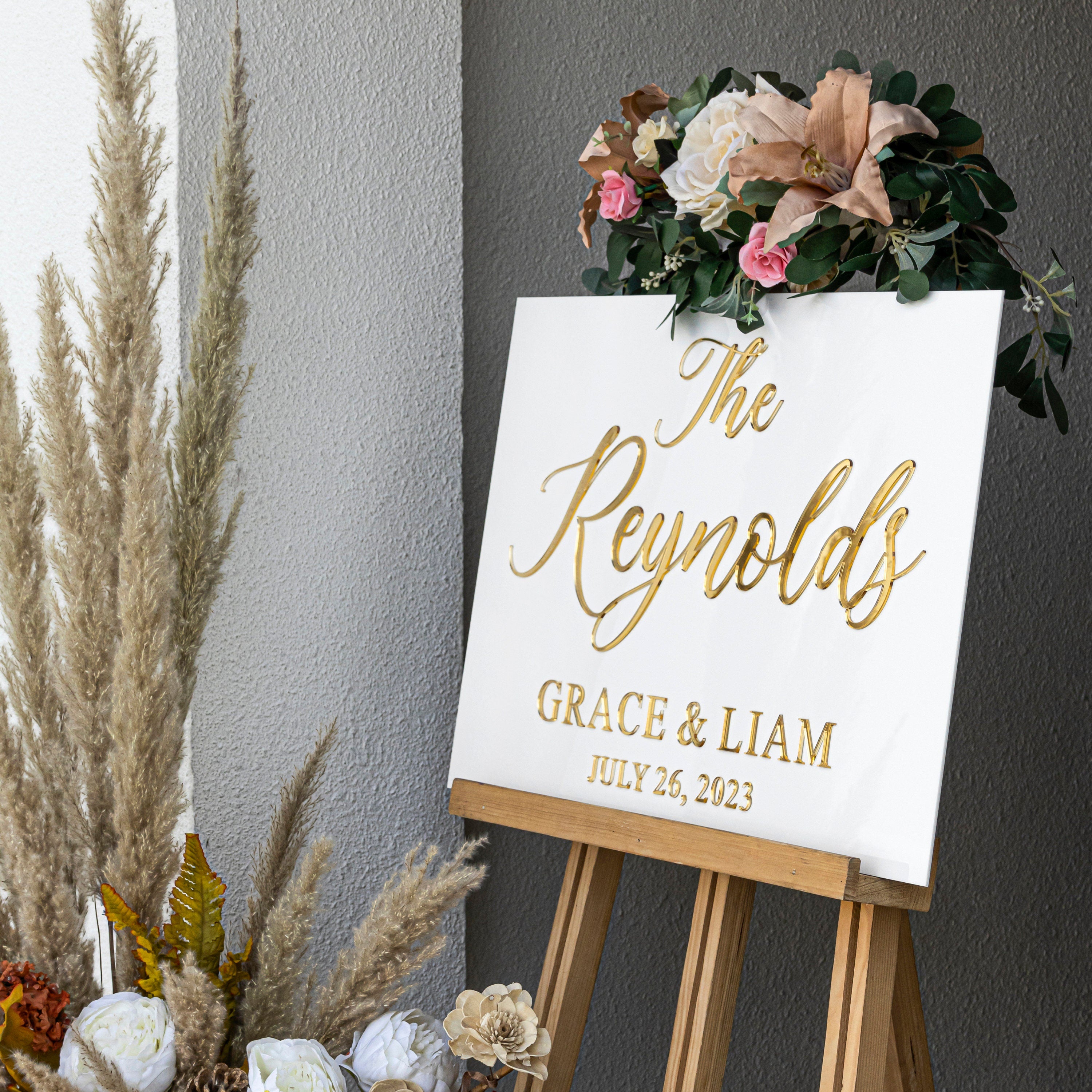 Personalized 3D Welcome signs are a beautiful Wedding décor to welcome your guest. This modern wedding welcome sign is made out of acrylic sheet. The lettering is of high quality Mirror gold acrylic to make it more beautiful and long lasting. We do not use vinyl or stickers.