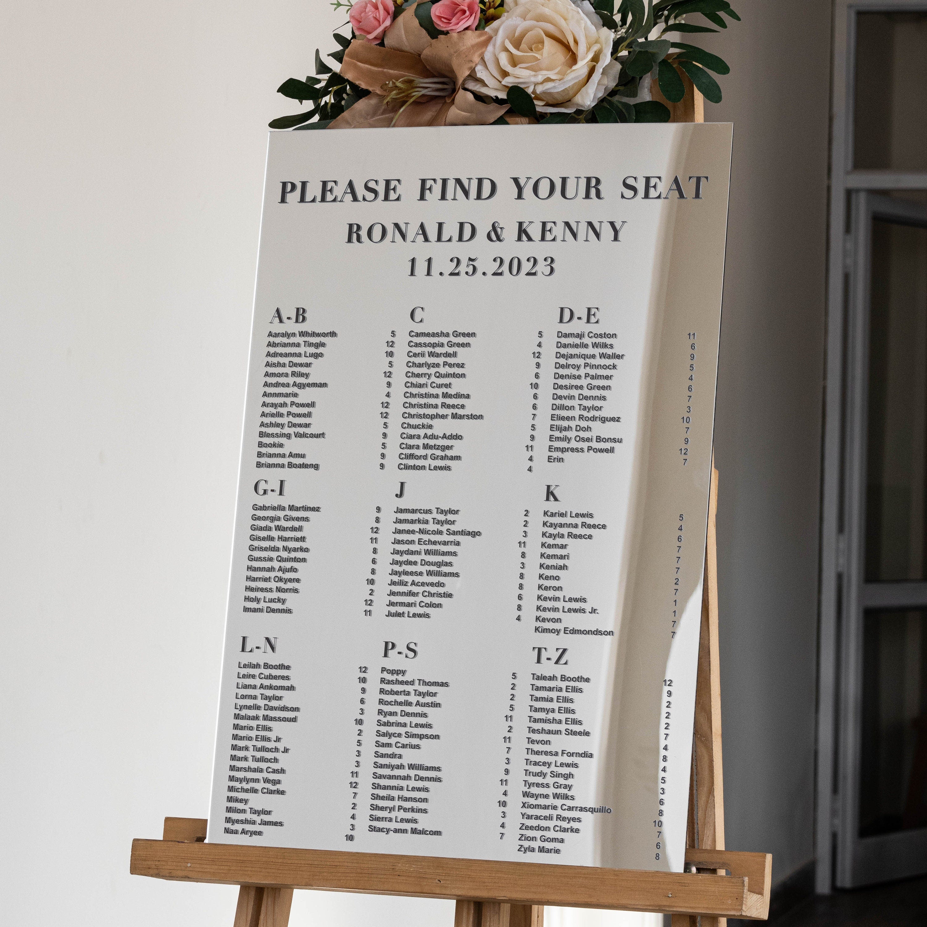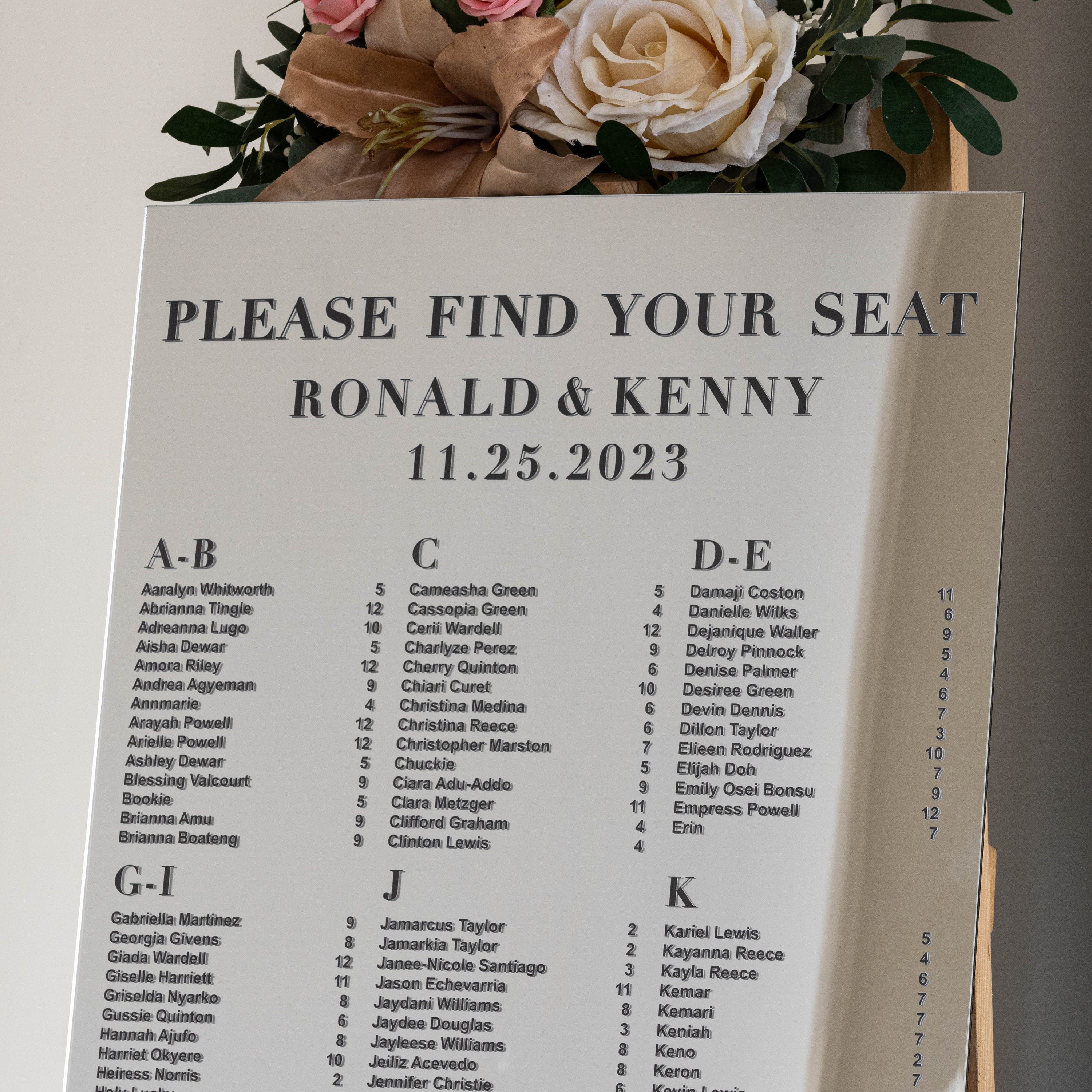 Personalized Acrylic UV Printed Seating Chart are a beautiful Wedding décor to welcome your guest. This modern wedding Seating Chart is made out of Mirror Gold acrylic sheet. We use UV Printing for best durability. * WE DO NOT USE VINYLS OR STICKERS.