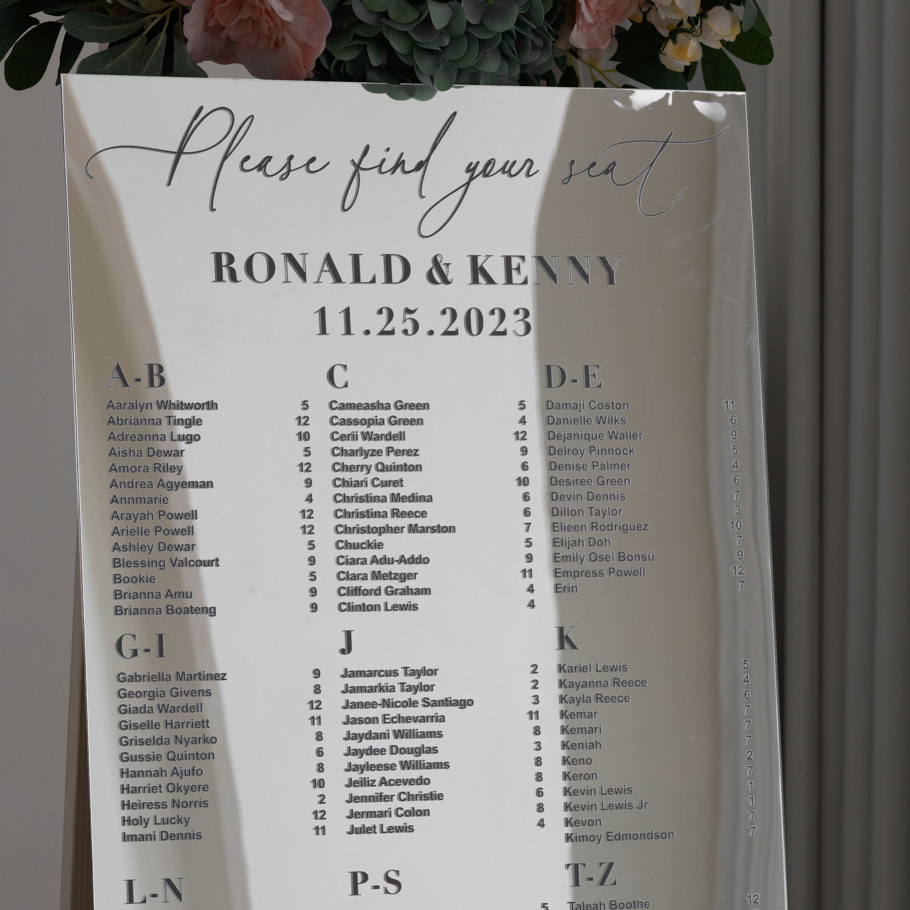 Art of Affairs has always believed that “Wedding does not have to be Expensive, it has to be Memorable” , so in order to make it memorable we are determined to add all the love ,creativity and customized touch to the Wedding seat Signs. Customized Seating signs are a beautiful Wedding décor to welcome your guest. This modern wedding seating sign is made out of Mirror Silver acrylic and UV Print, We do not use VINYL or stickers, we use UV Printing for best durability and better look.
