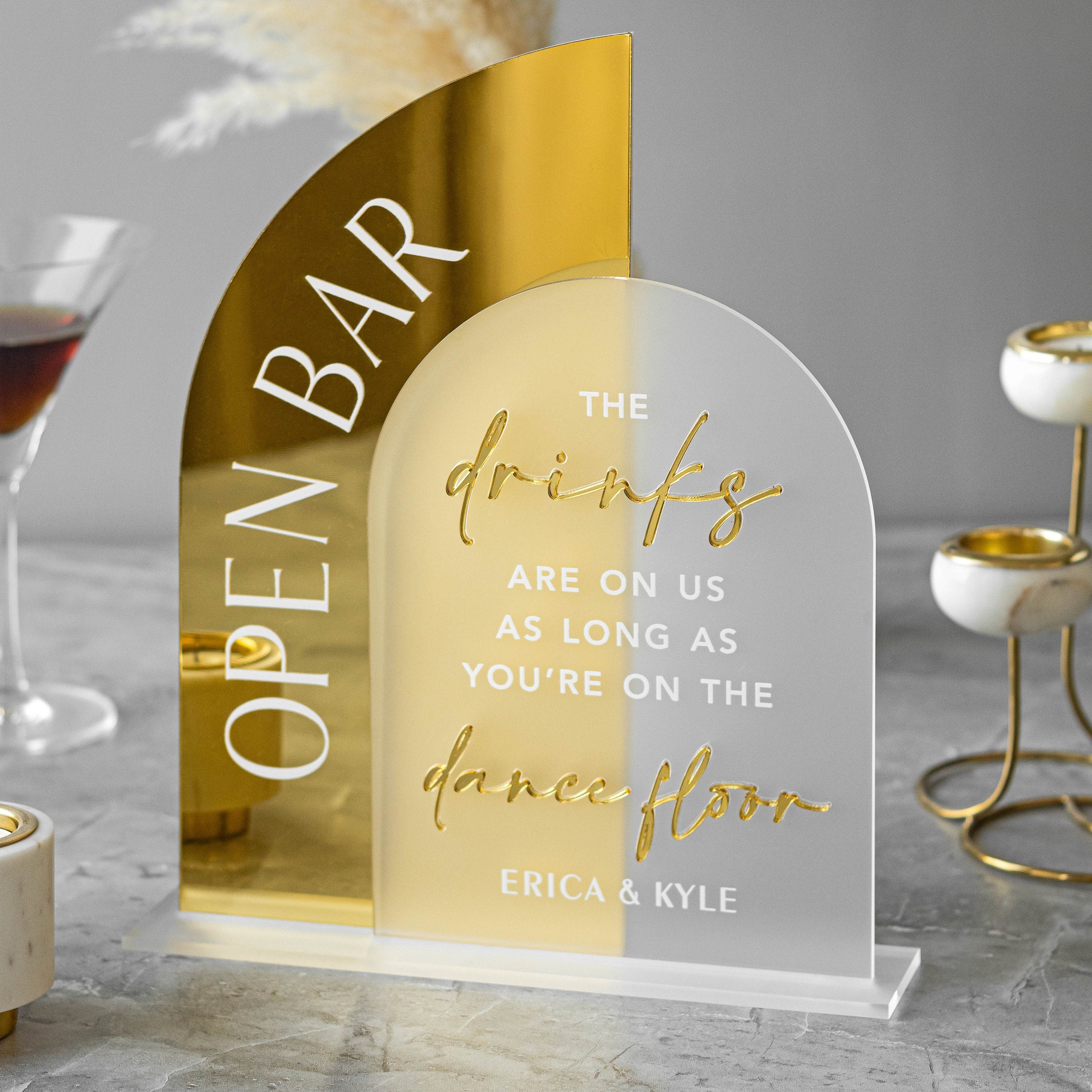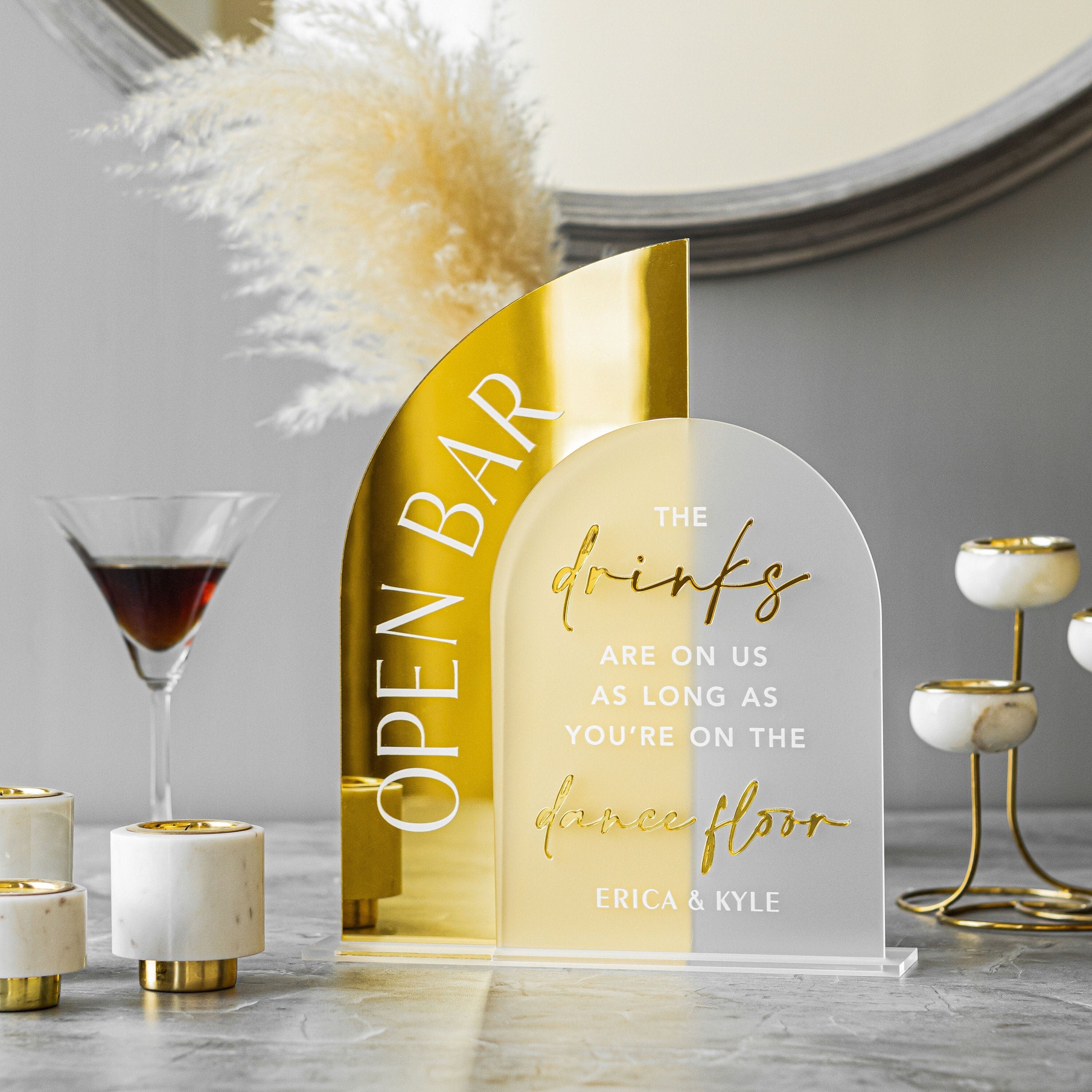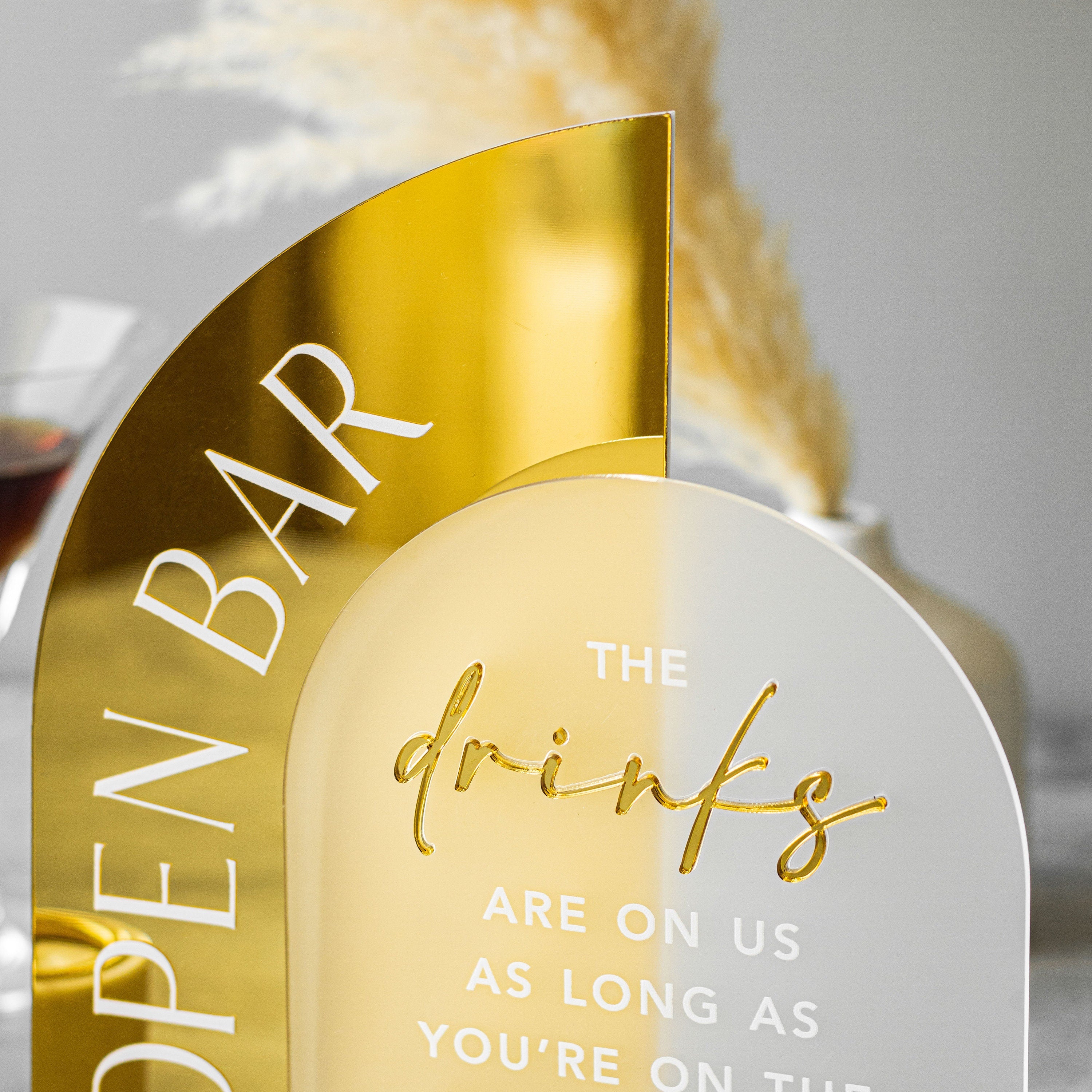 Open Bar Arched Wedding Sign, Open Bar Acrylic Sign, Wedding Table Decor, Gold Mirror Wedding Bar Sign , Gold Acrylic Drinks Sign, Wedding Bar signs