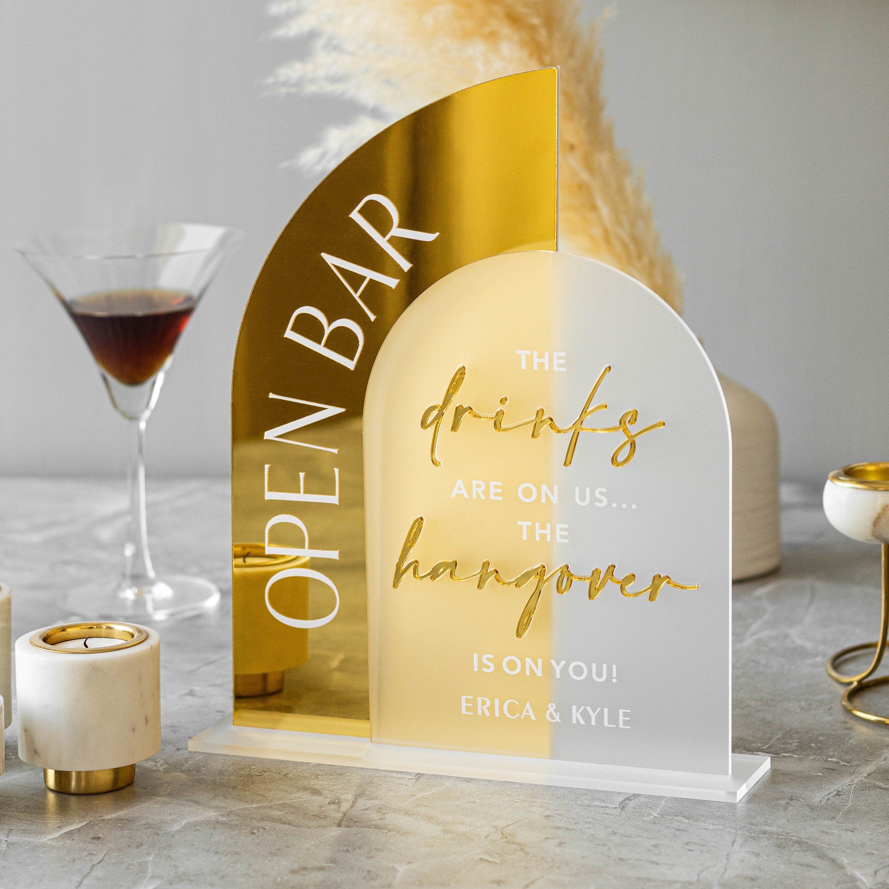 Open Bar Arched Wedding Sign, Open Bar Acrylic Sign-RR