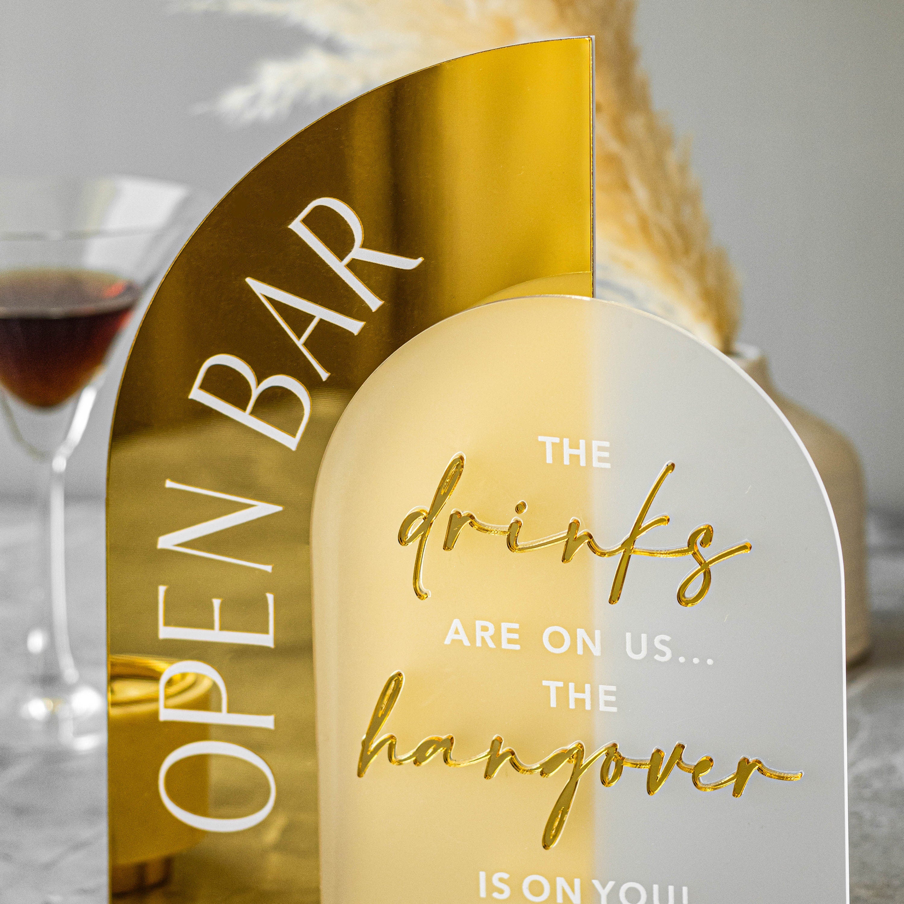 Open Bar Arched Wedding Sign, Open Bar Acrylic Sign, Wedding Table Decor, Gold Mirror Wedding Bar Sign...