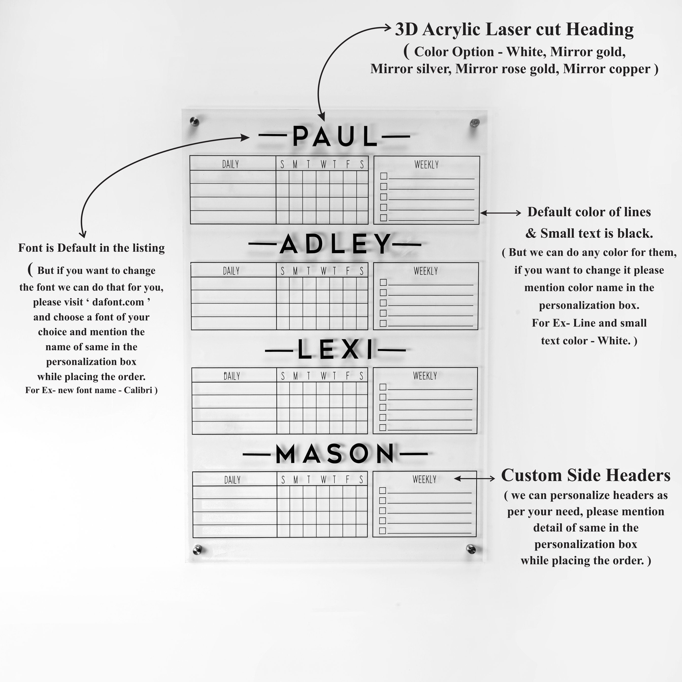 Personalized Chore Chart for Four Kids