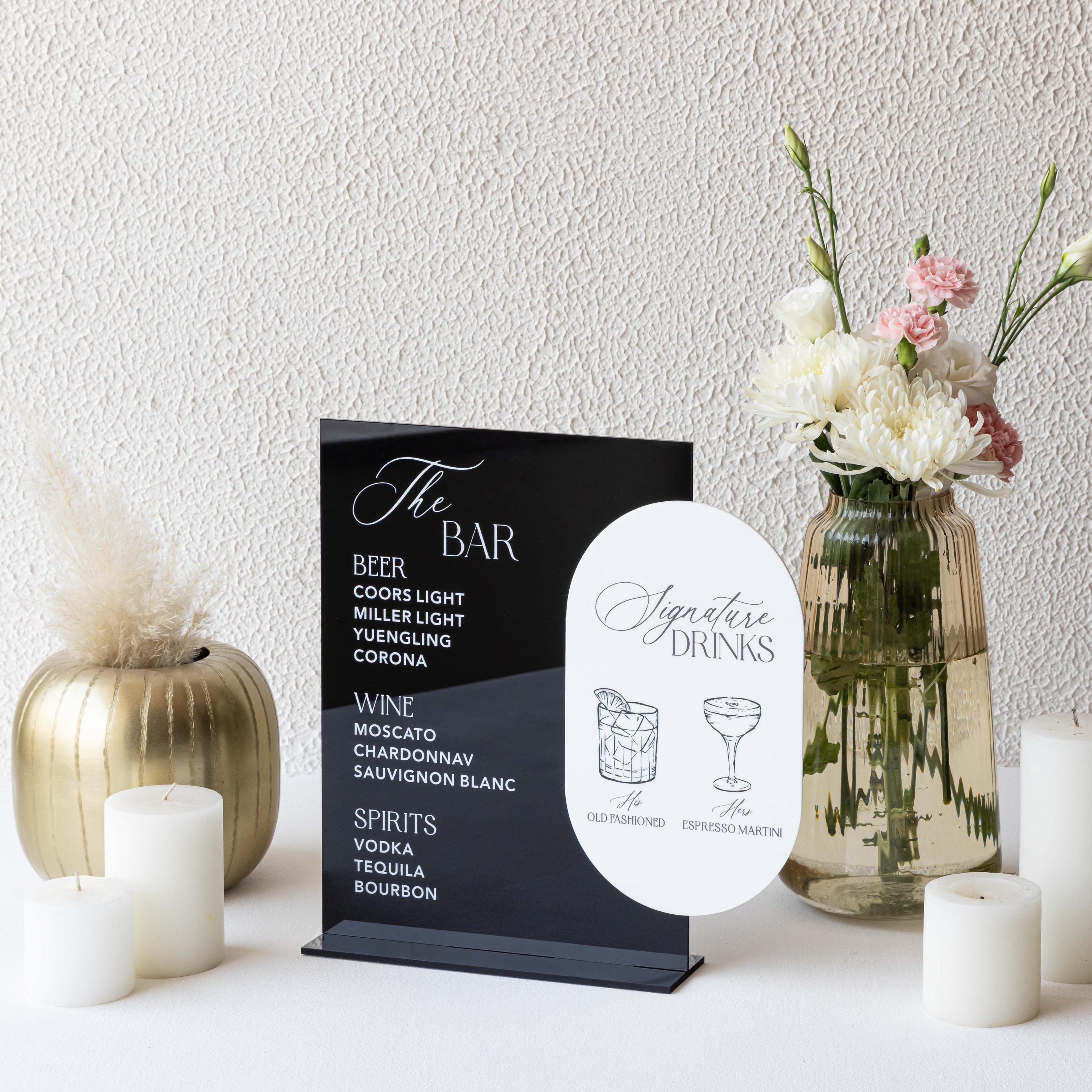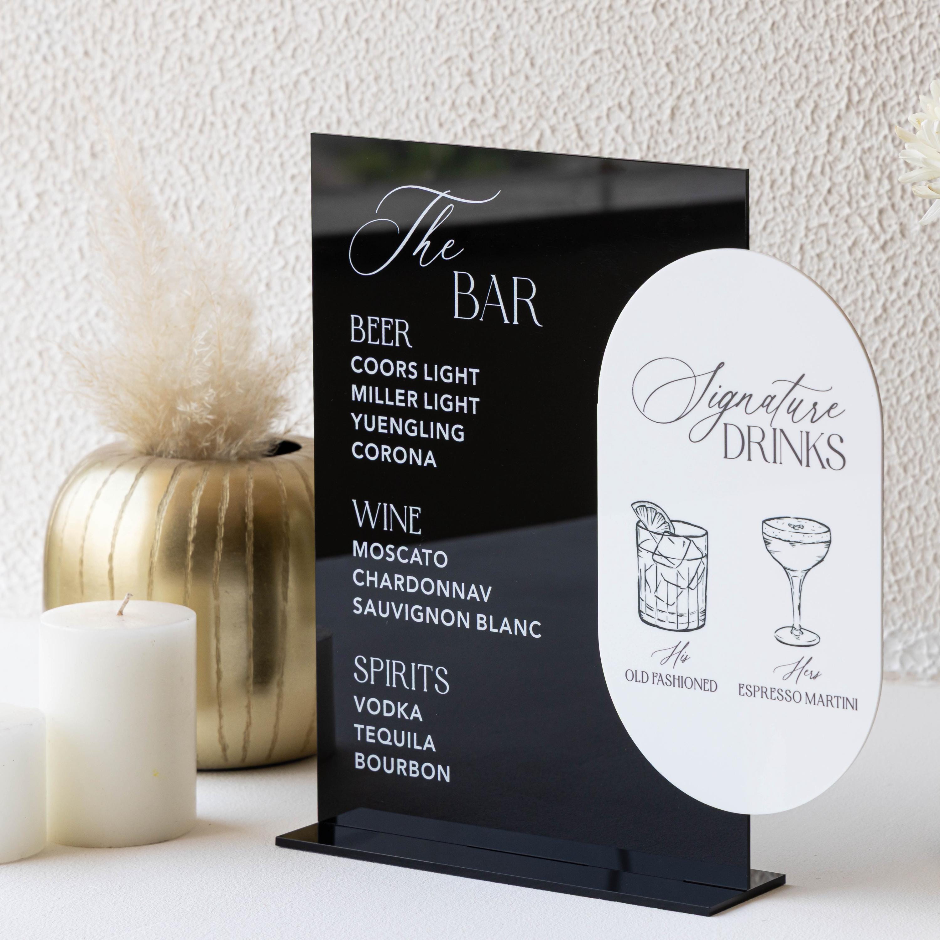 Introducing our exquisite Wedding Black and White Acrylic Bar Sign, a perfect blend of elegance and modern charm. Handcrafted with meticulous attention to detail, this stunning sign will elevate your wedding bar decor, adding a touch of sophistication to your special day.