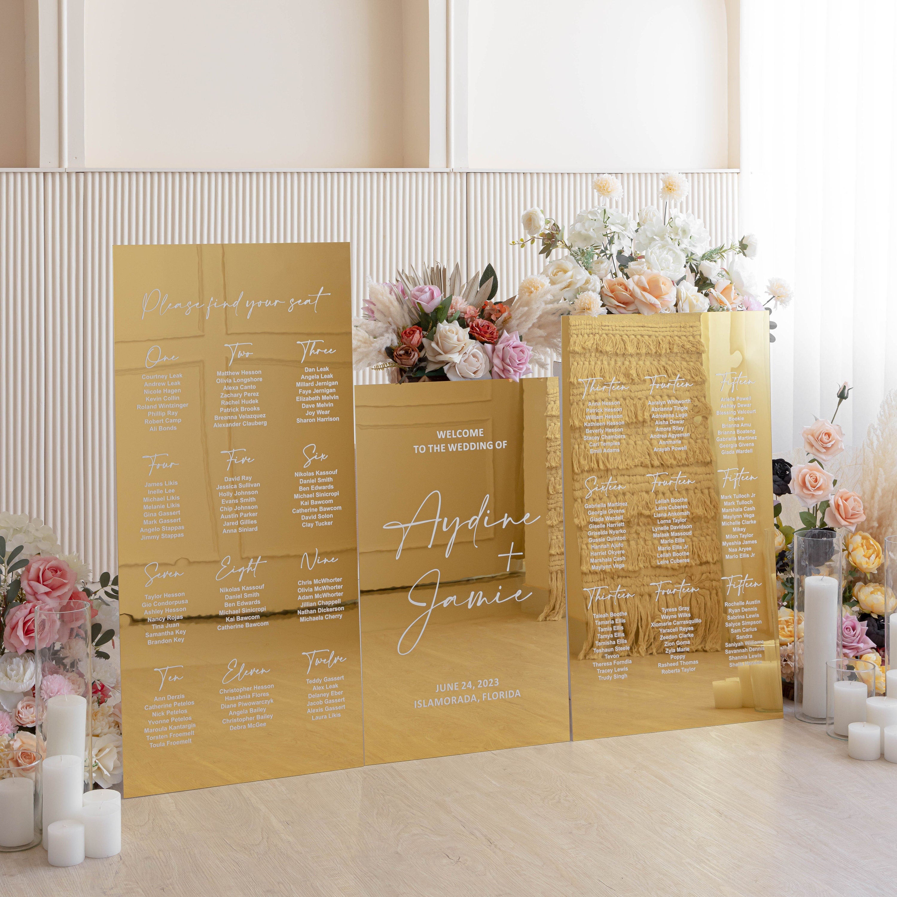 Party Starts Now - Mirror Gold Acrylic Wedding Welcome Sign - Ceremony Welcome Sign - Custom Wedding Sign - Modern Wedding Sign -Gold Wedding Decor - Wedding Signage - Acrylic wedding welcome sign - Wedding Signs Bundle -wedding Seating Chart - Set of Three - Acrylic Wedding Sign - Wedding Decor - Reception Welcome Sign - Welcome Signs