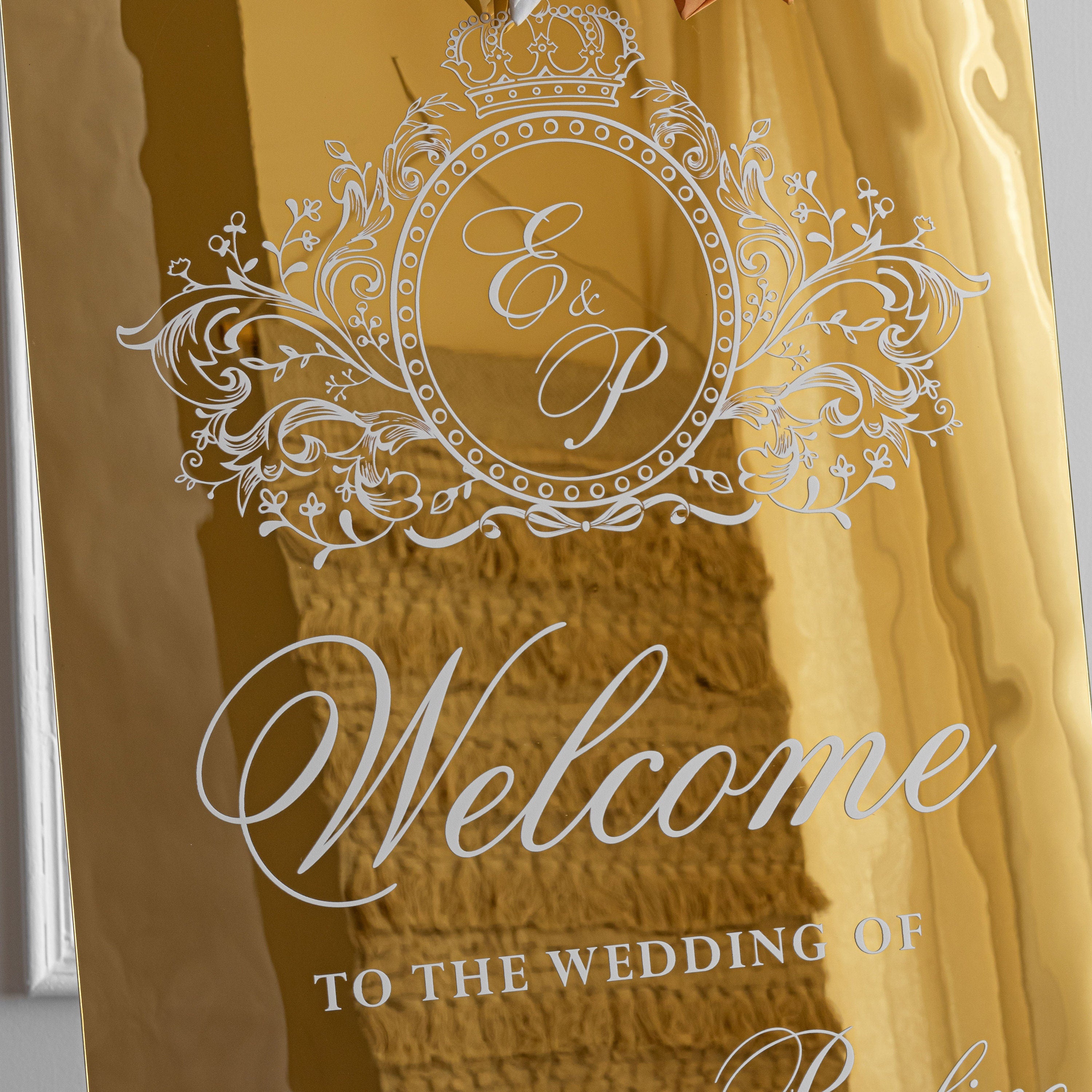 This modern Wedding signs is made out of Mirror Gold acrylic sheet. The lettering is done using UV printing machine to make it more beautiful and long lasting.