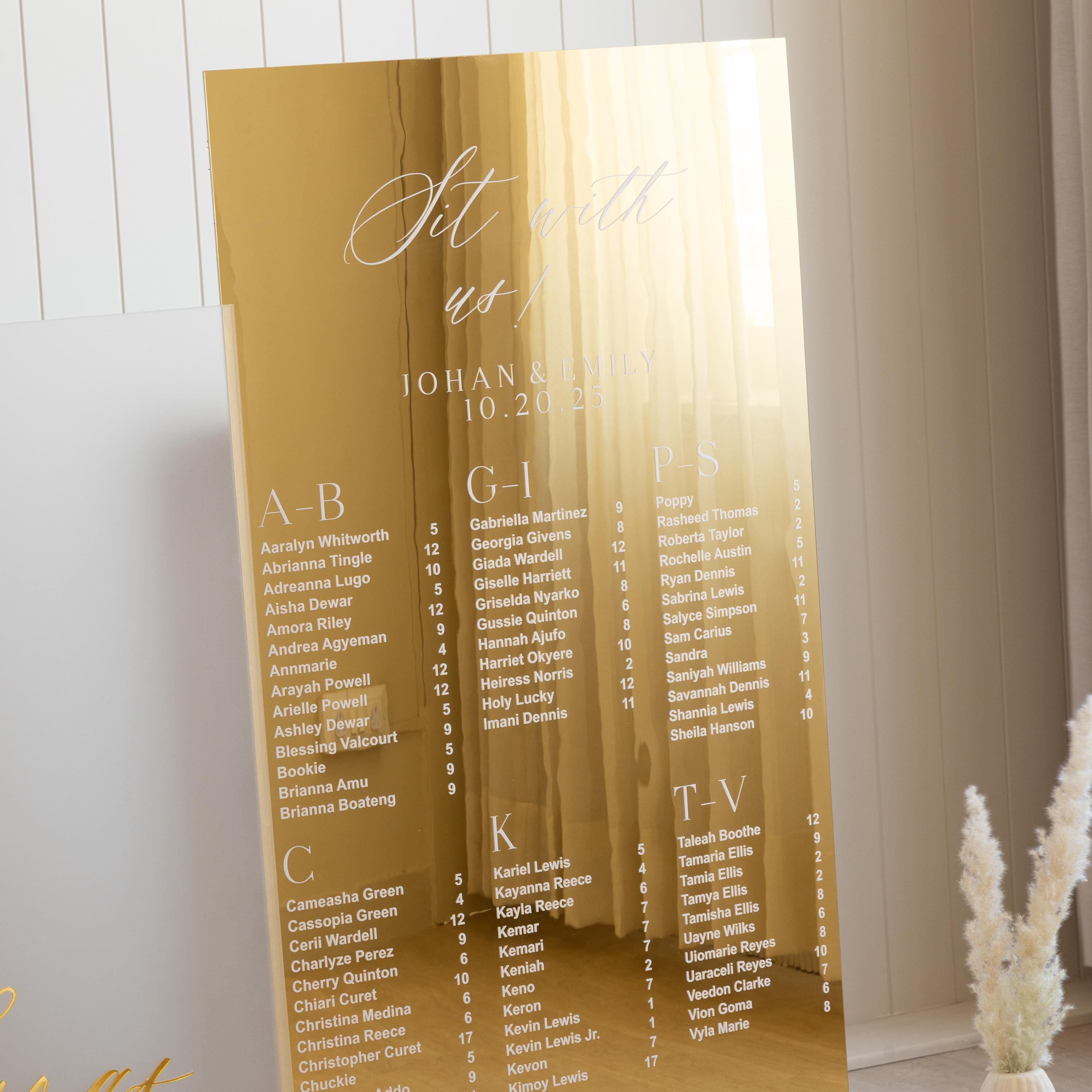Enhance your wedding reception décor with our exquisite wedding sign bundle. Crafted from high-quality gold mirror and frosted acrylic, this elegant seating chart and welcome sign add a touch of sophistication to your special day