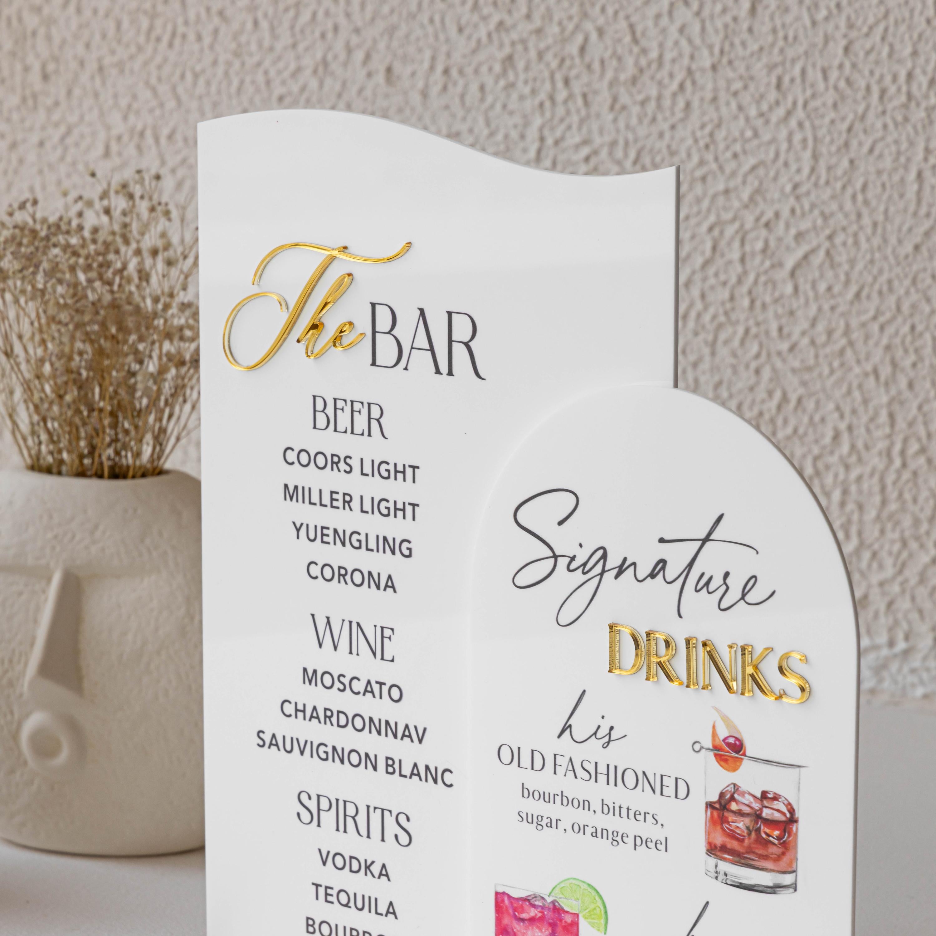 Introducing our exquisite Wedding White and Mirror Gold Acrylic Bar Sign, a perfect blend of elegance and modern charm. Handcrafted with meticulous attention to detail, this stunning sign will elevate your wedding bar decor, adding a touch of sophistication to your special day.
