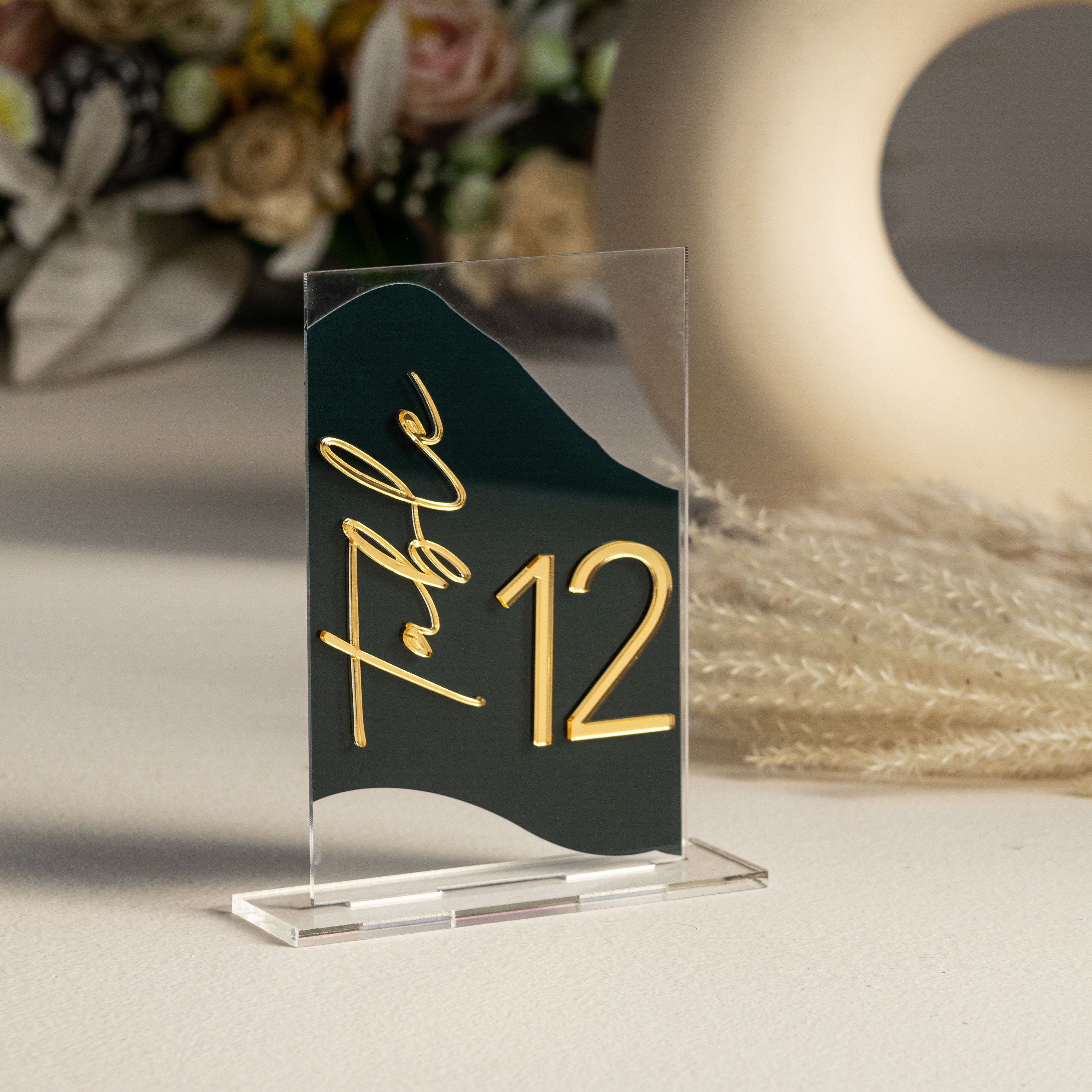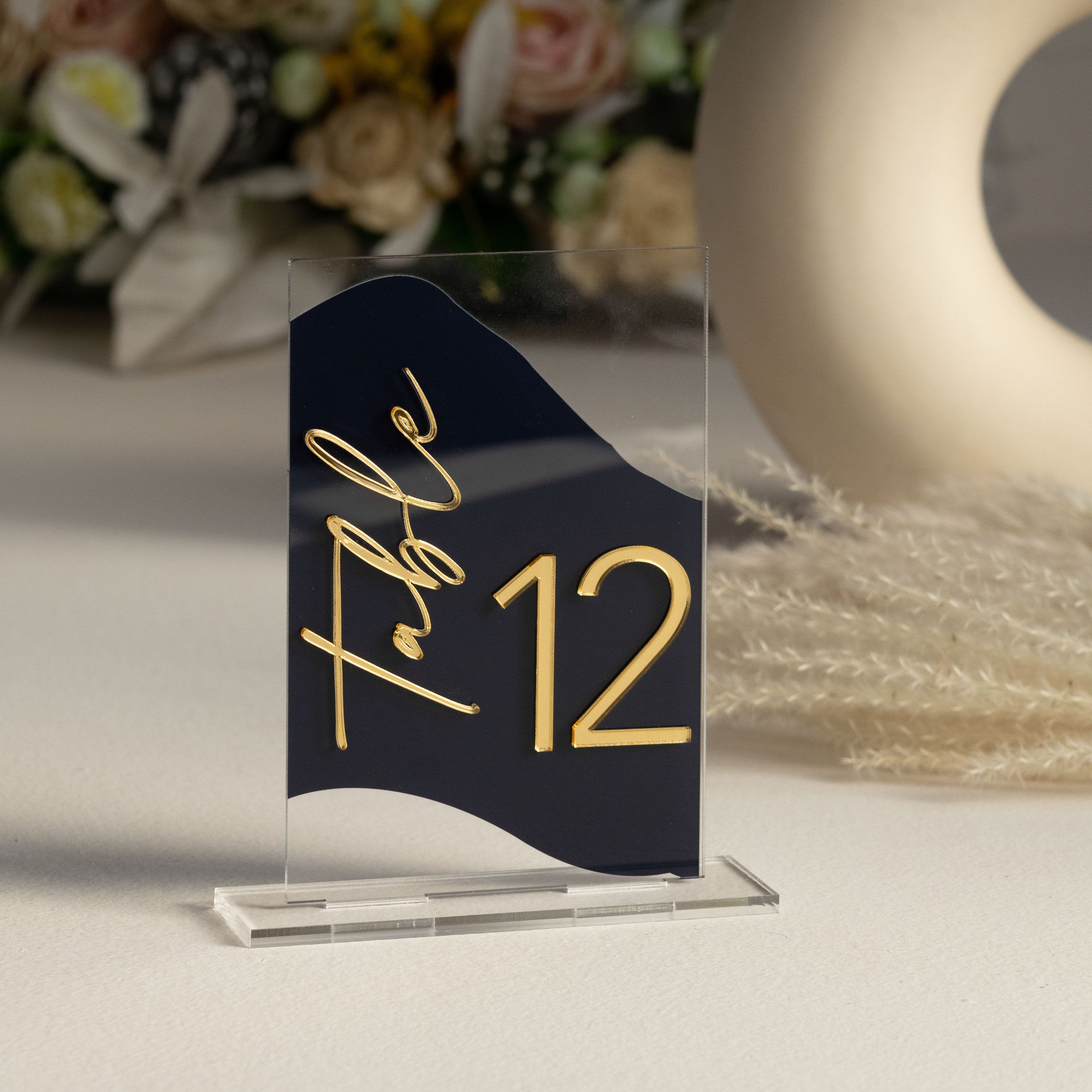 Personalized 3D Table Numbers are a beautiful Wedding Table décors . These modern Table Numbers are made out of acrylic sheet. The lettering is of high quality Mirror gold acrylic to make it more beautiful and long lasting.
