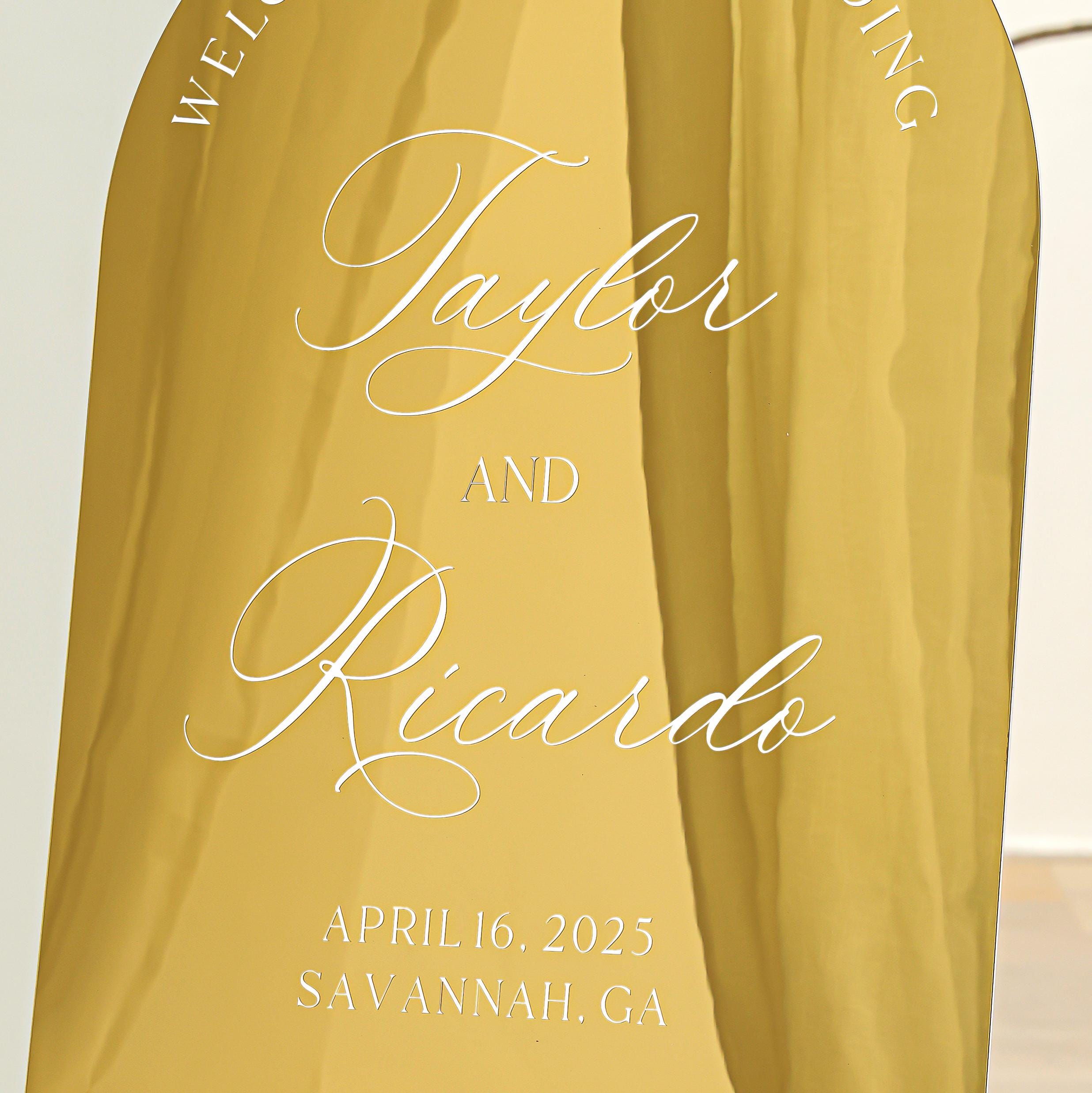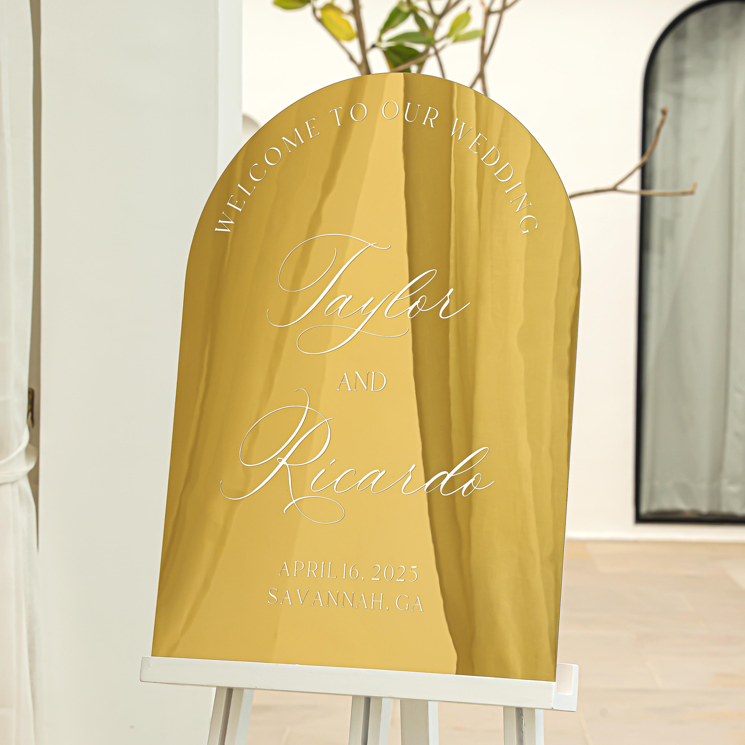 This modern wedding welcome signs is crafted from high-quality Mirror Gold acrylic. The lettering is done using UV Printer, ensuring a long-lasting, luxurious finish. Unlike other signs that use vinyl or stickers.