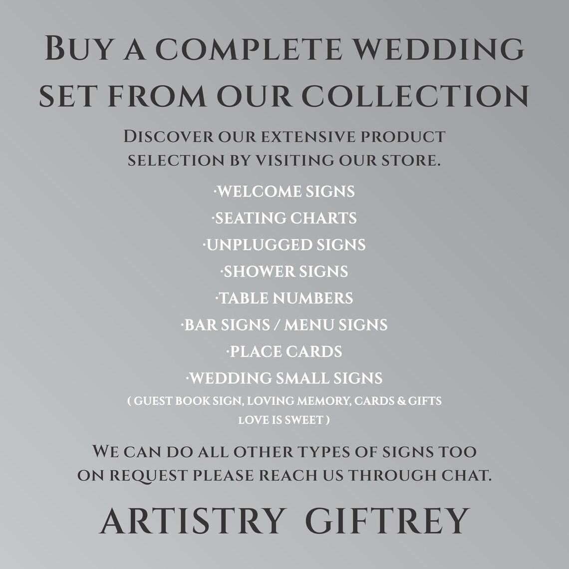 We offer full customization to ensure your wedding sign fits your vision perfectly. Whether you prefer a minimalist design or a more intricate style, we're happy to work with you to bring your dream wedding sign to life.
